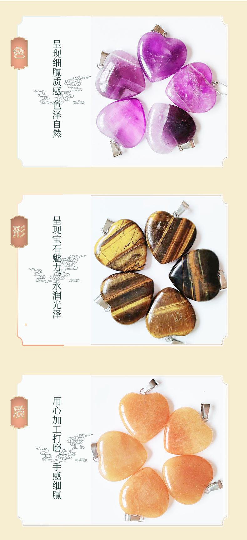 Transfronterizo 25mm Piedra Semipreciosa Natural Colgante de Corazón de Cristal Corazón de Durazno Colgante Collar en Forma de Corazón Regalo de San Valentín