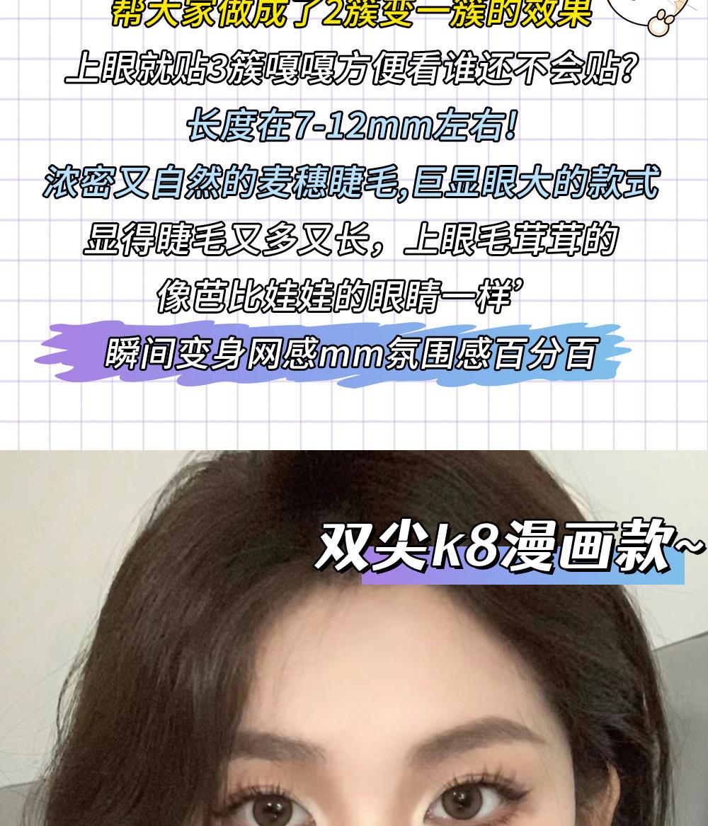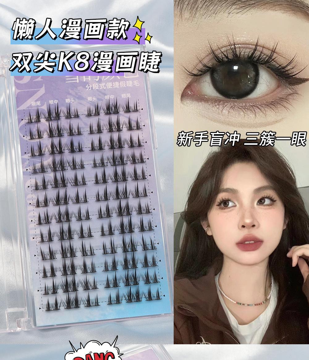 Pestañas postizas K8 de doble punta, imitación natural, sección gruesa, serie perezosa, pestañas Little Devil