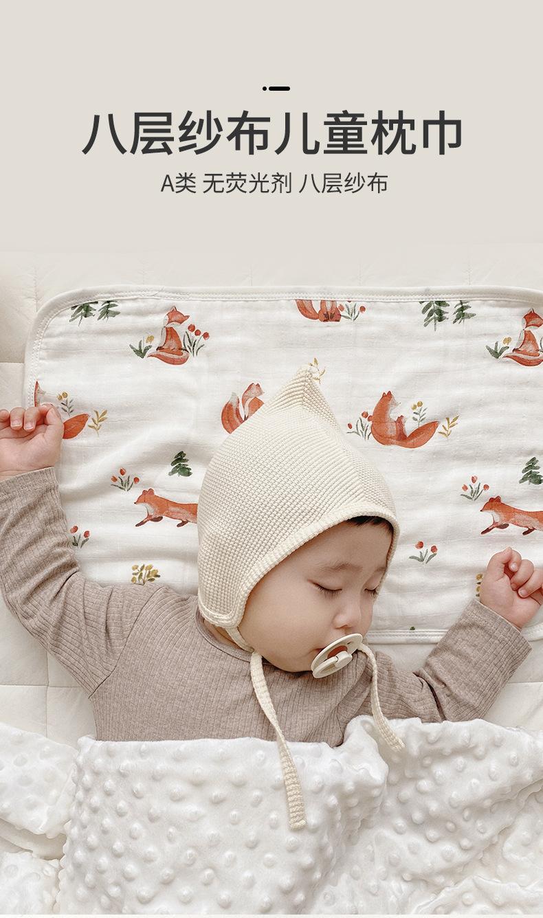 Funda de Almohada para Bebé Gasa de Algodón Bambú Almohada Nube Gasa para Almohada Recién Nacido Almohada Plana Almohadilla Antivómito Absorbente de Sudor Transpirable Suave