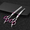 Pink-flat scissors + tooth scissors + upper bend + scissors bag + steel comb + wiping cloth, Pink-flat scissor...