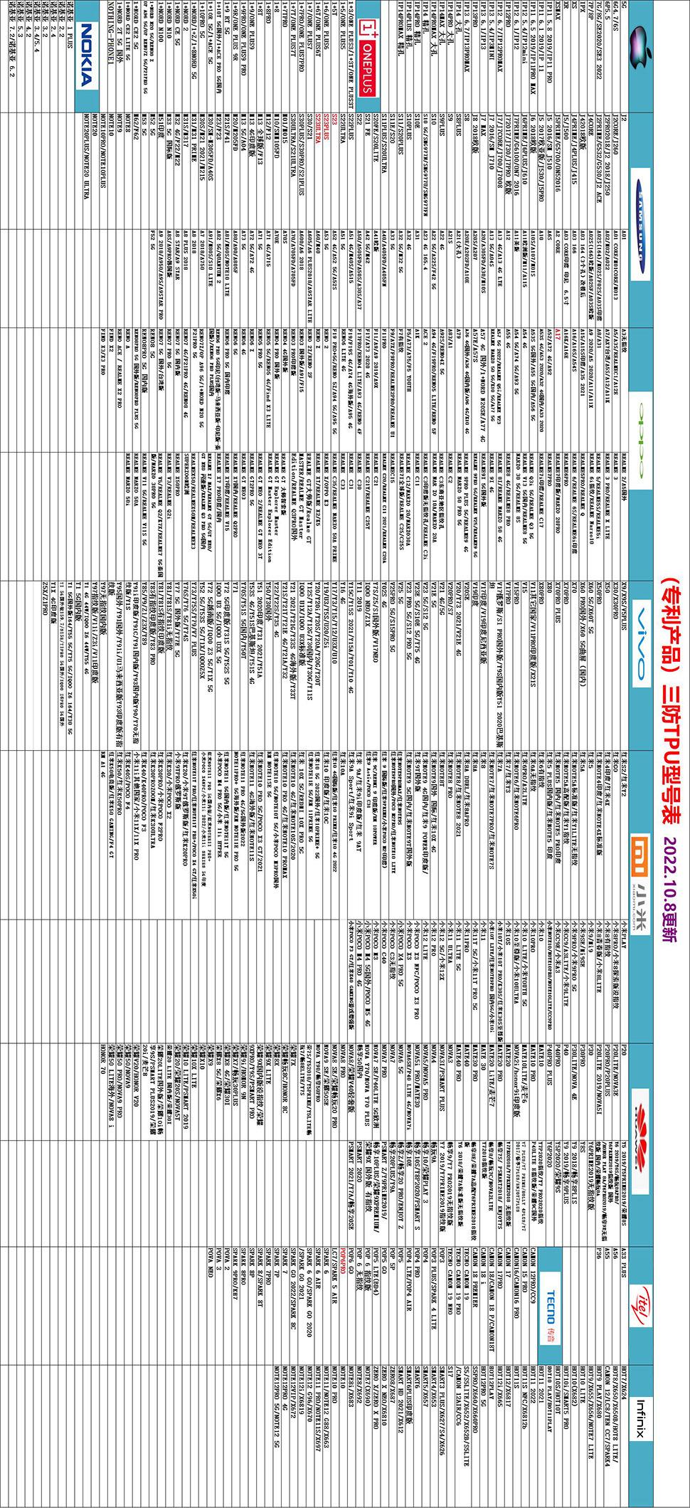 ¡Por favor, gire su teléfono para ver la lista de modelos!