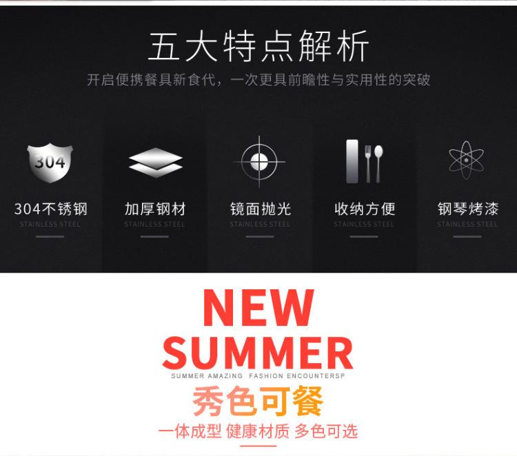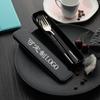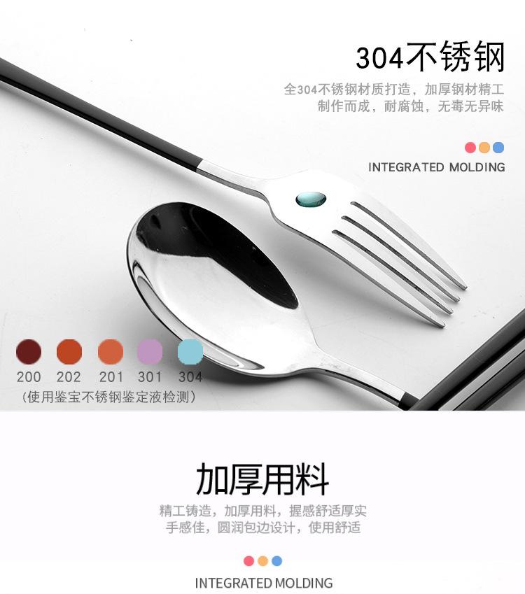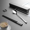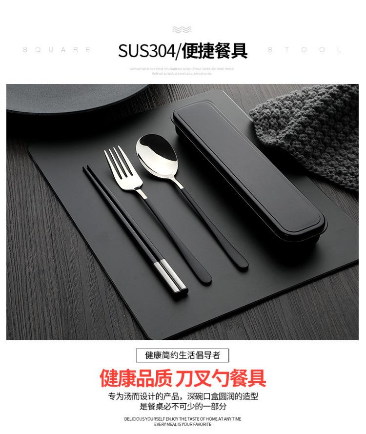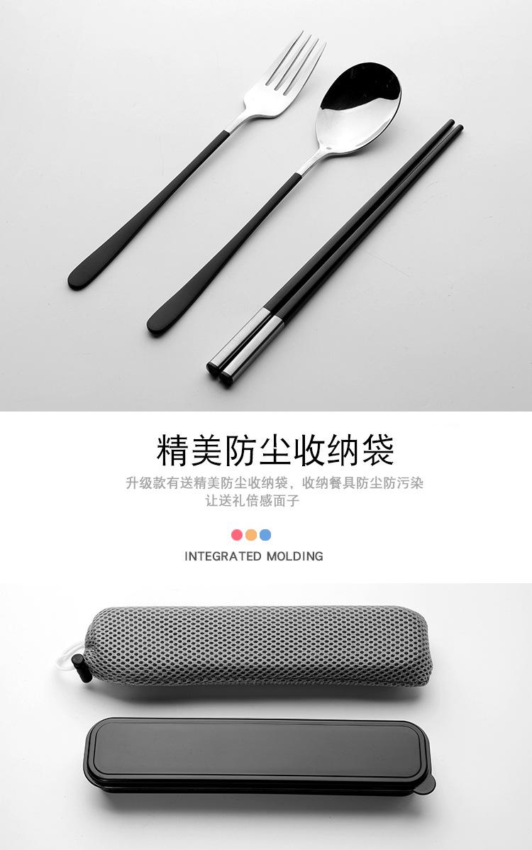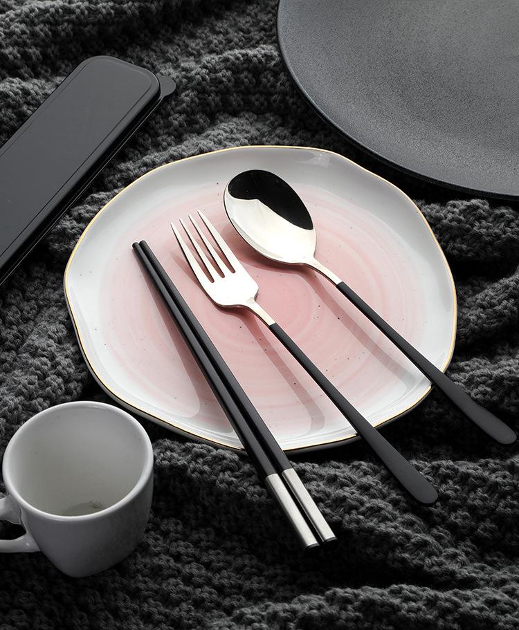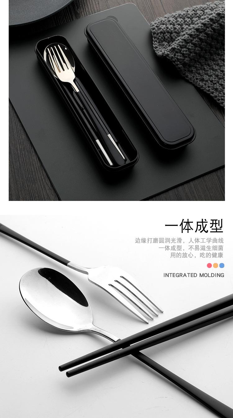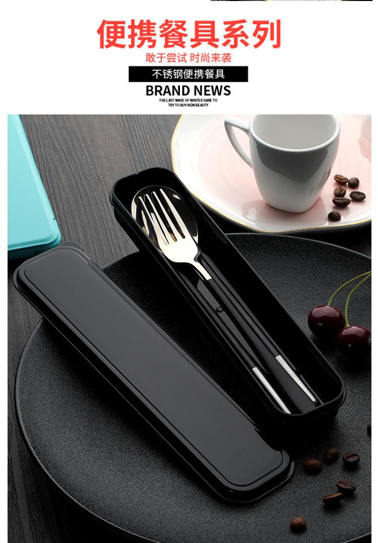 Suministro de juego de vajilla de viaje portátil para estudiantes, de tres piezas, de acero inoxidable 304, con cuchara, tenedor y palillos, disponible para exteriores.