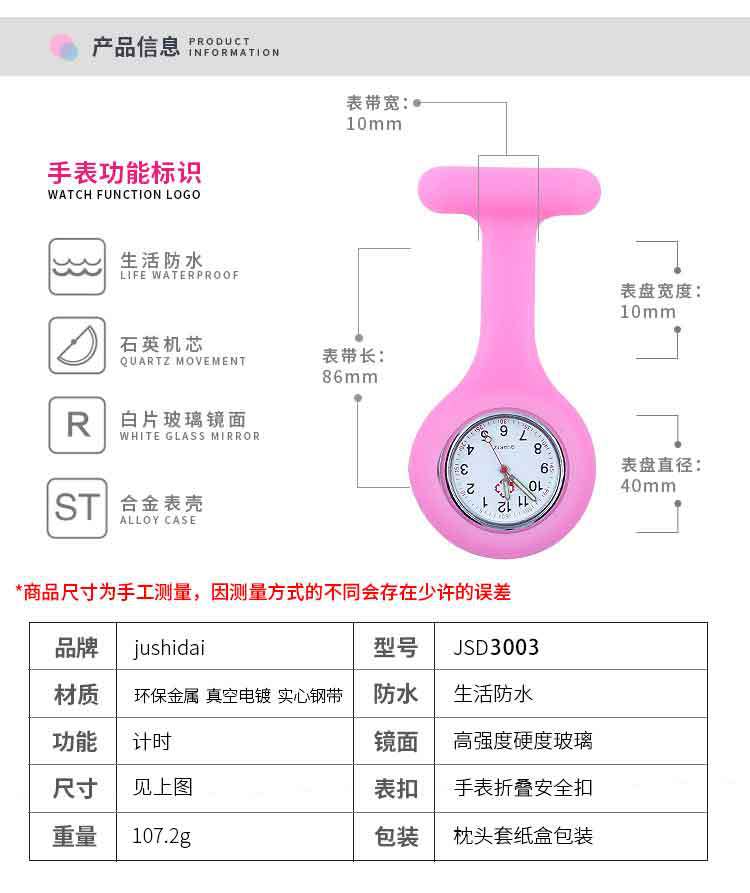 Reloj de enfermera, reloj colgante, bonito reloj de bolsillo de silicona para doctora, estudiante, estilo coreano, sencillo, resistente al agua, para enfermera.