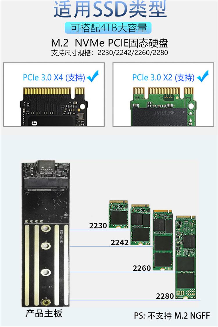 Caja de unidad de estado sólido de tipo C a M.2 NVMe, adaptador de protocolo PCIE a USB 3.1, carcasa SSD m2GEN2