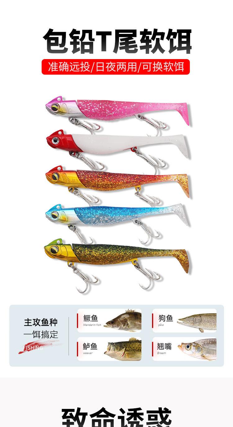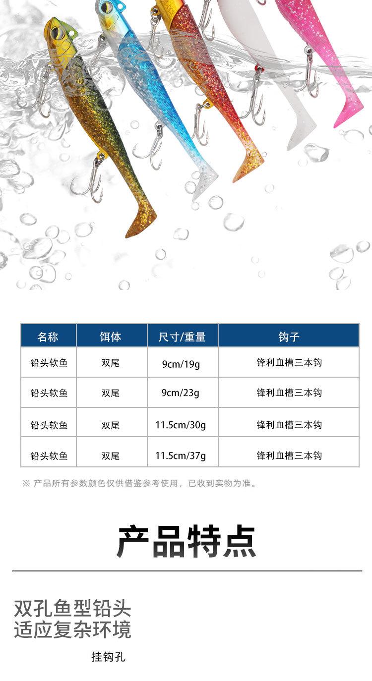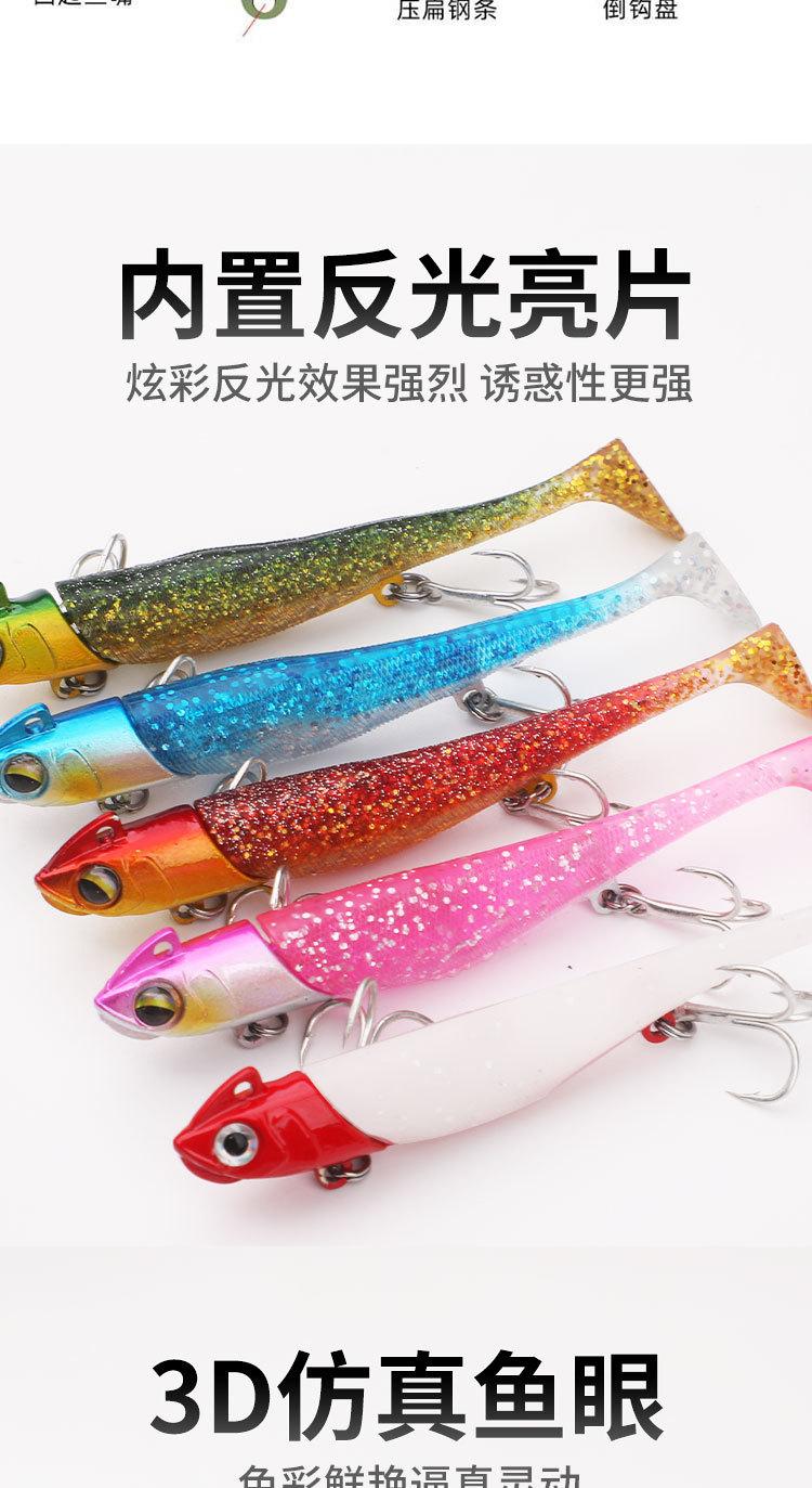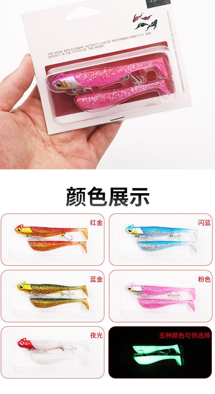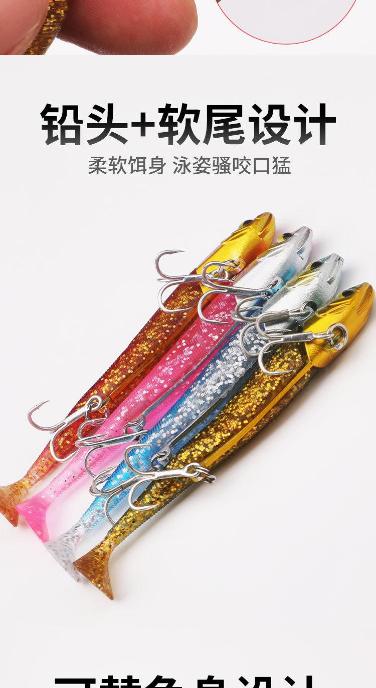 Señuelo Transfronterizo Lentejuelas Plomo Sumergible Pez Cebo Blando Ranura de Sangre de Doble Cola Anzuelo Triple Señuelo de Largo Alcance Cebo Biónico