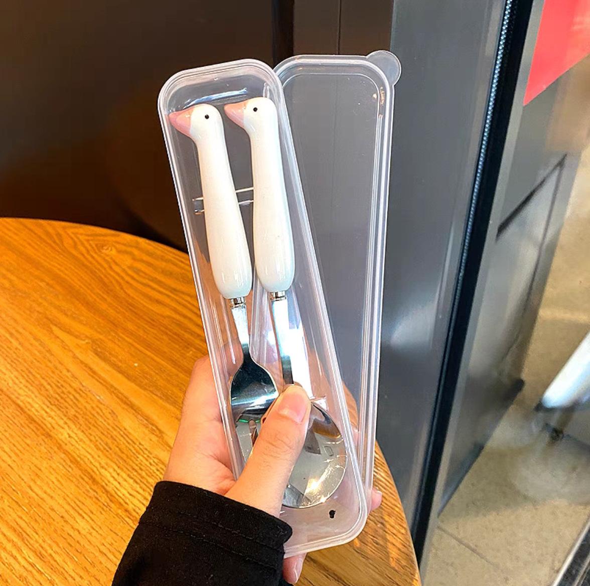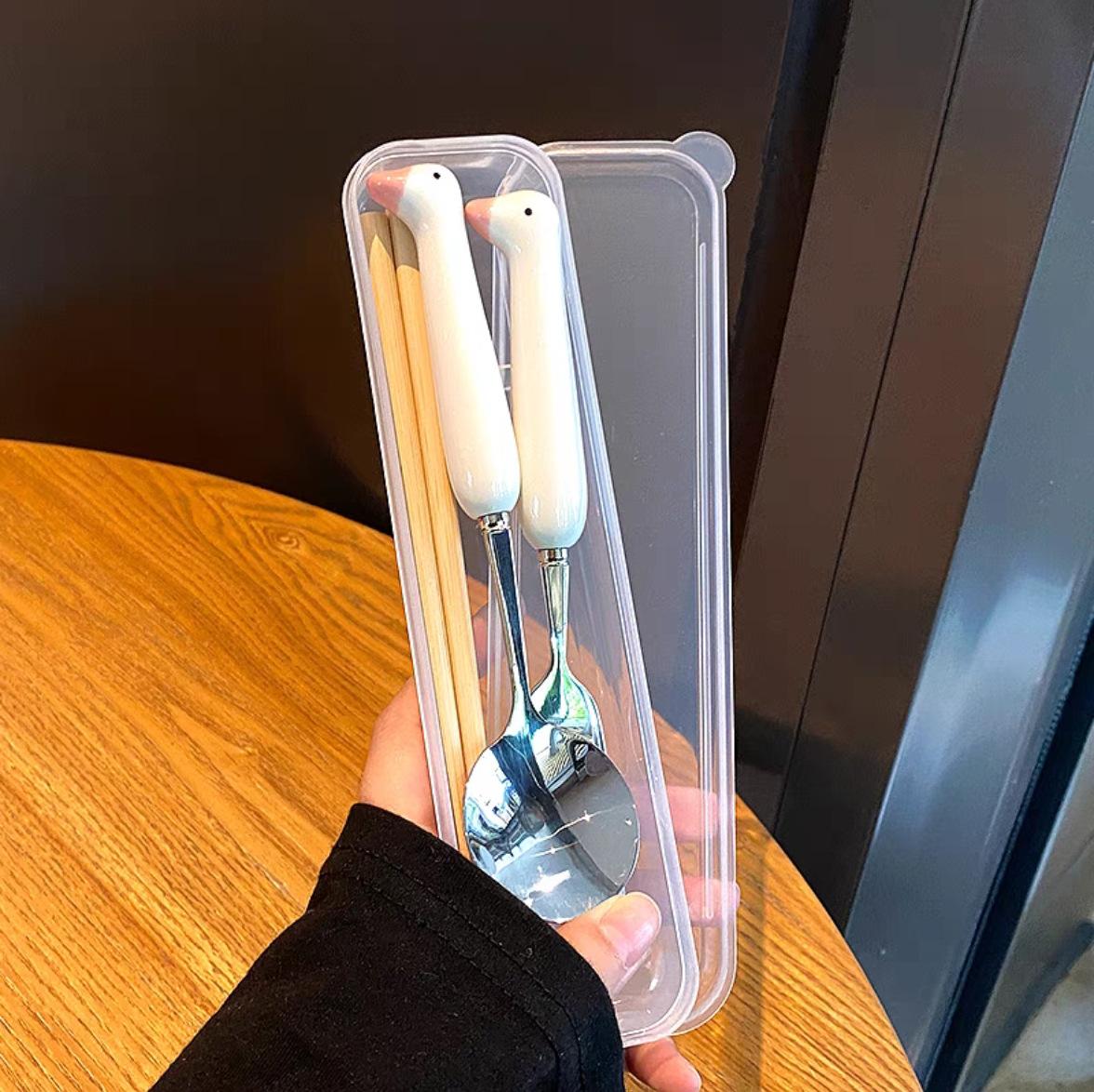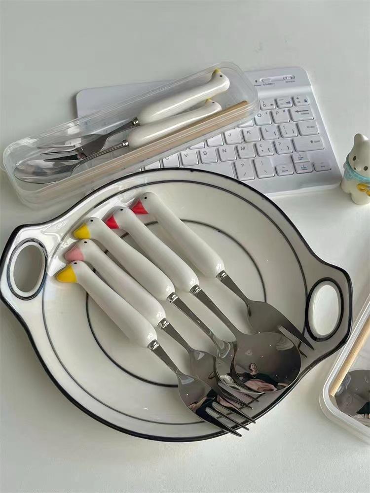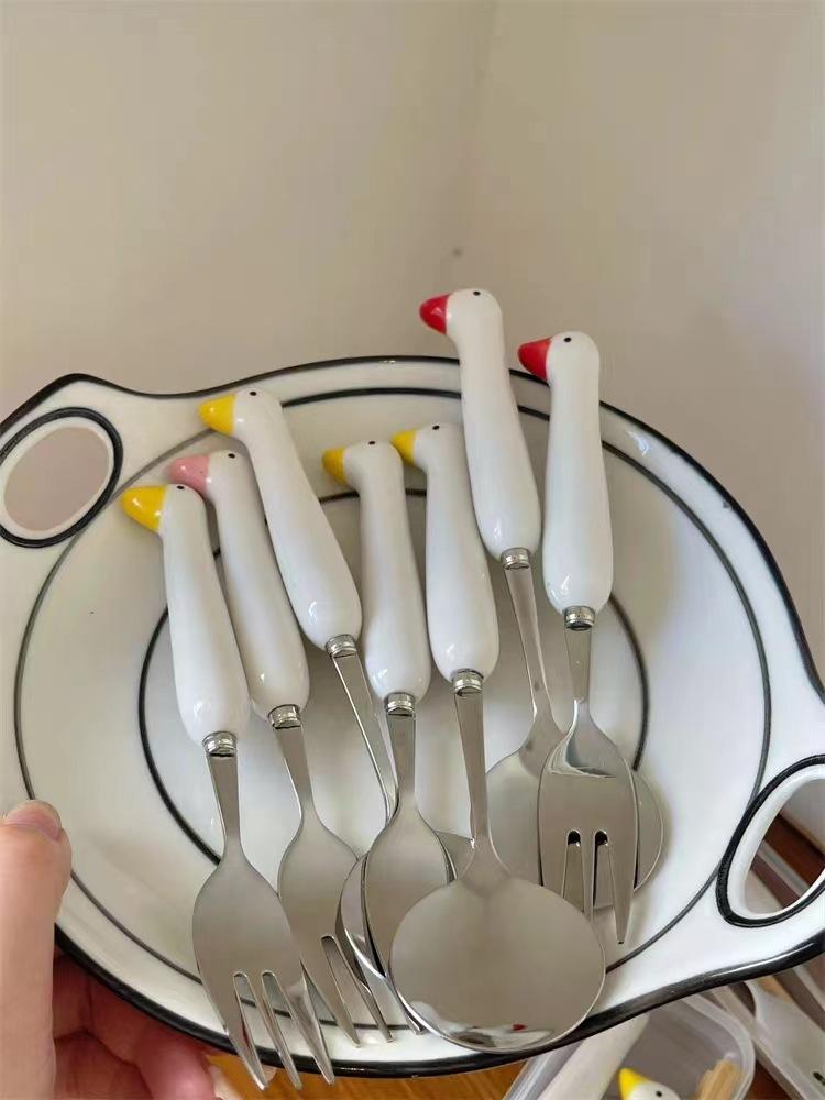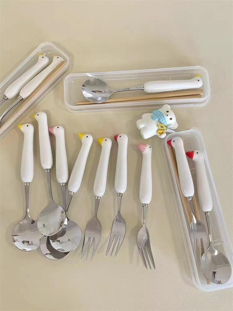 Yellow goose single spoon, Yellow Goose Spoon Fork Storage Box, Yellow Goose Spoon Chopsticks Fork Storage Box...