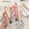 Set Creativo de Acero Inoxidable de Aspecto Elevado para el Hogar Creativo Cubiertos Cuchara Tenedor Vajilla Portátil Estilo Ins