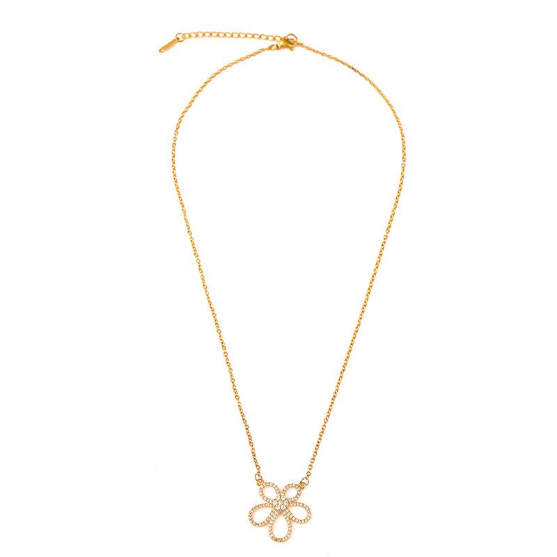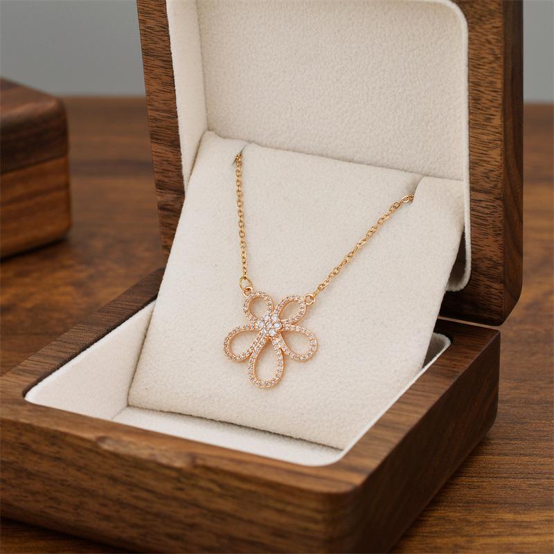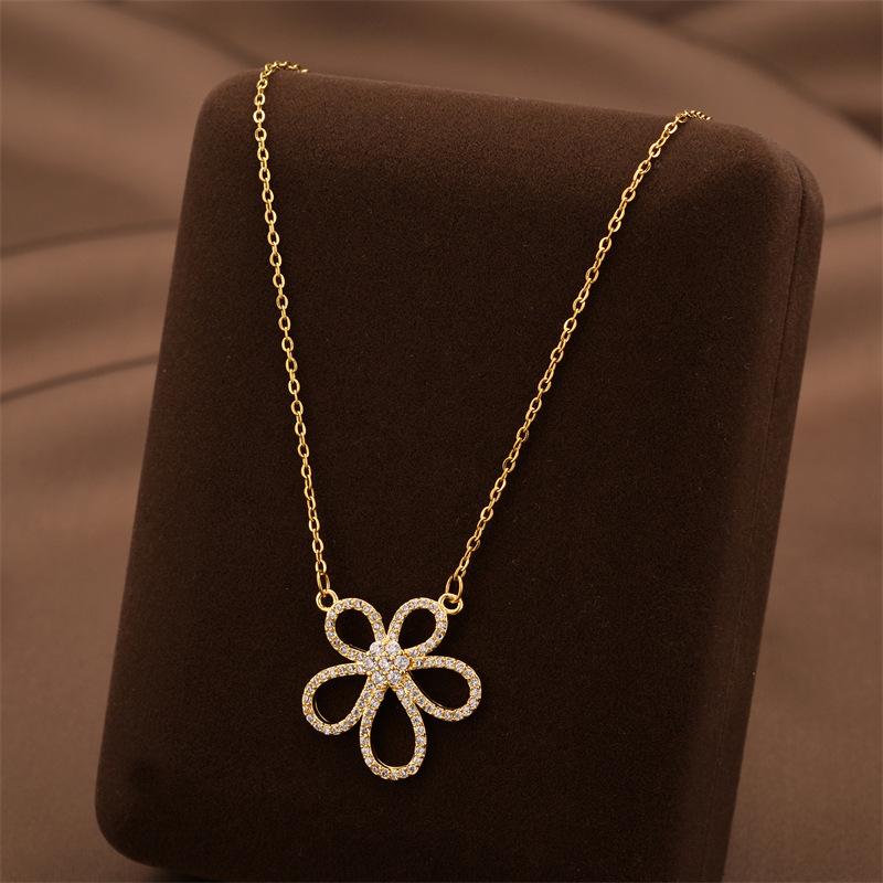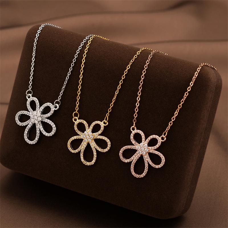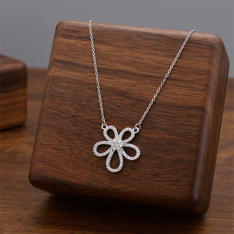 En stock, venta al por mayor, cadena de clavícula femenina con microincrustaciones de girasol de cinco pétalos, accesorios transfronterizos de diamantes rojos llenos de red de viento para niña dulce