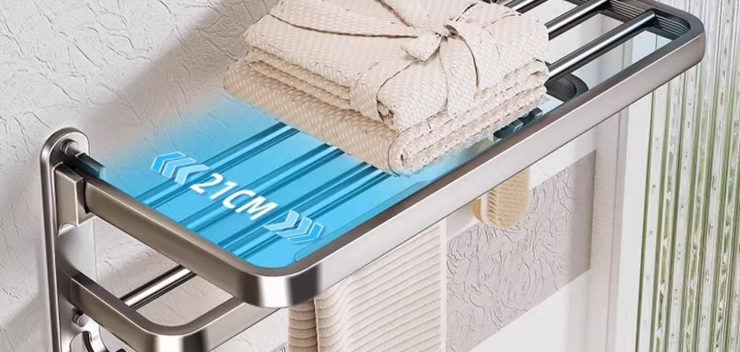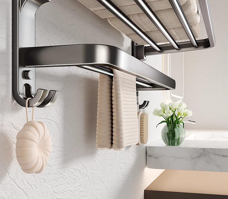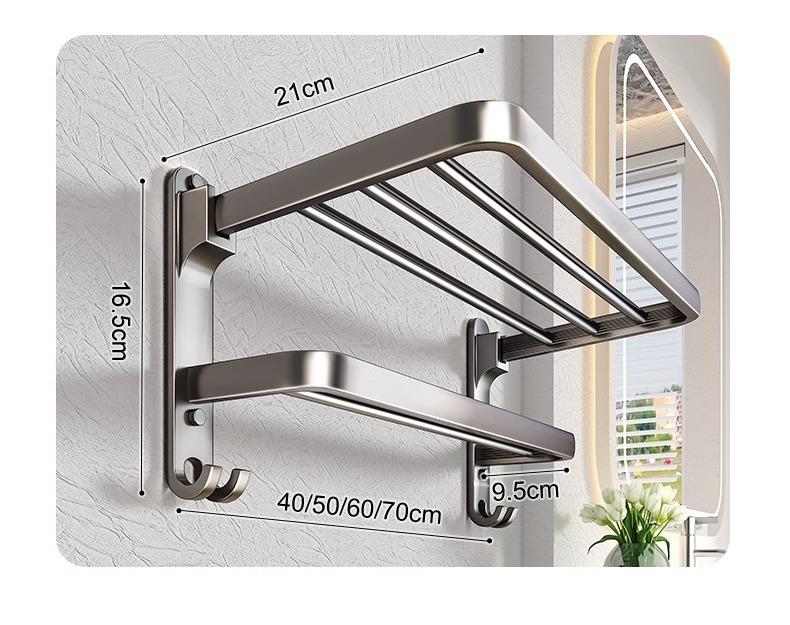 Single fold gun gray double layer bath towel rack 60cm-00226