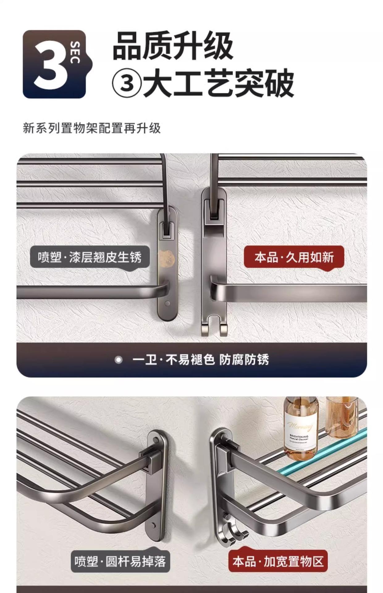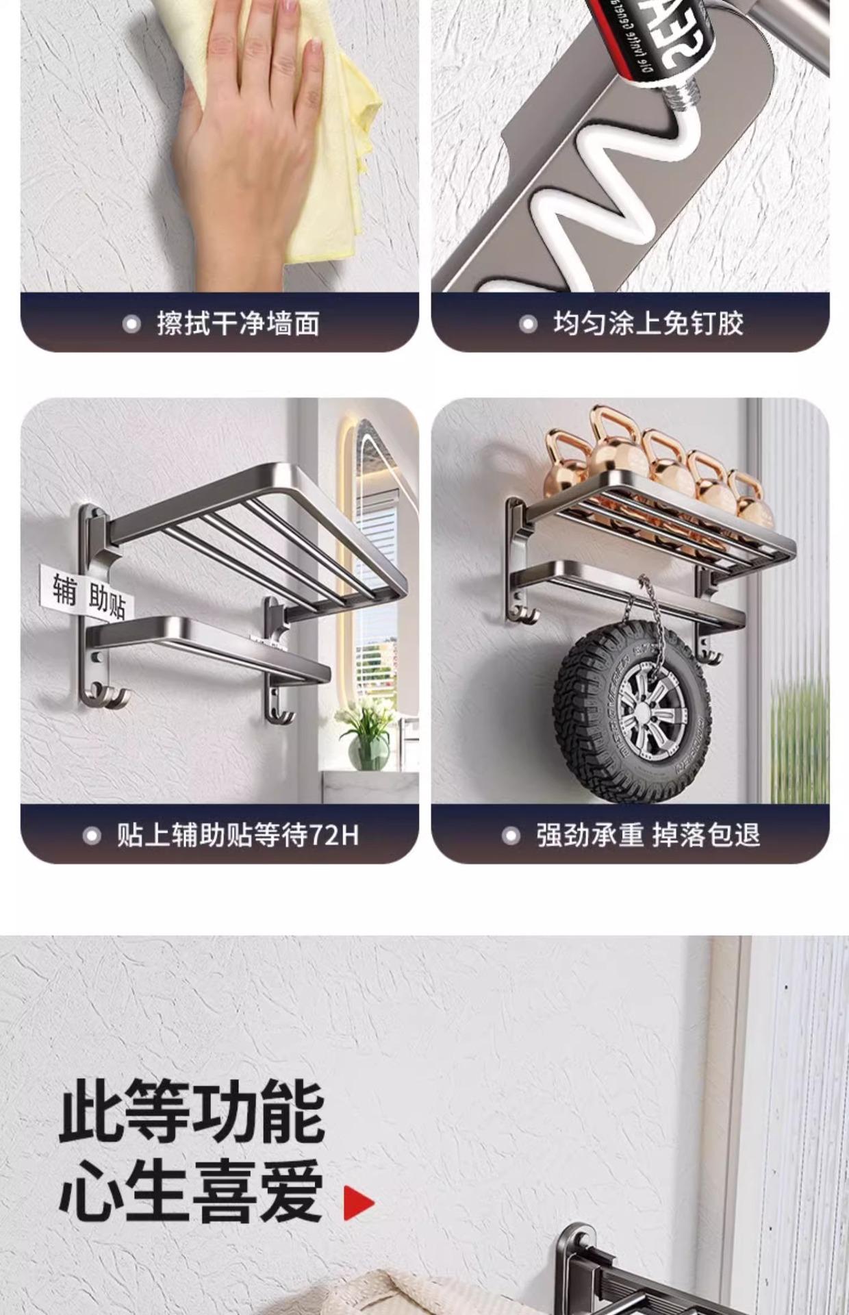Single fold gun gray double layer bath towel rack 40cm-02213, Single fold gun gray double layer bath towel rac...
