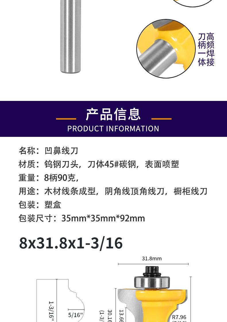 Máquina de tallado para tallado de línea nasal cóncava, tallado de línea de pasamanos, herramientas para trabajar la madera, cuchillo en forma de arco, fresa para borde de puerta, fresadora, fresado eléctrico de madera