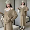 Ropa de lactancia materna, suéter de manga larga, falda, vestido de mamá sexy para embarazadas, primavera y otoño, largo medio, algodón puro, ropa de lactancia materna
