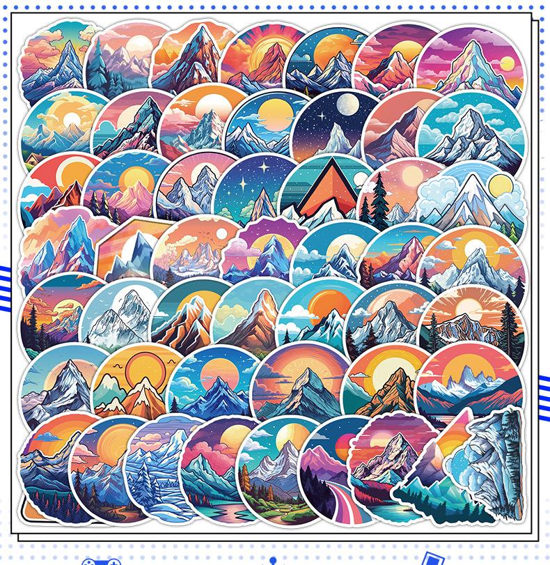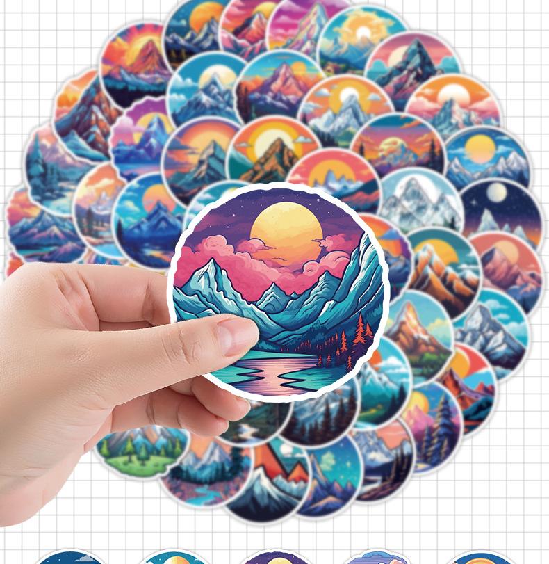 50 piezas de pegatinas de grafiti de montaña nevada coloridas mano con taza de agua pegatinas decorativas para equipaje impermeables pegatinas de juguete para niños