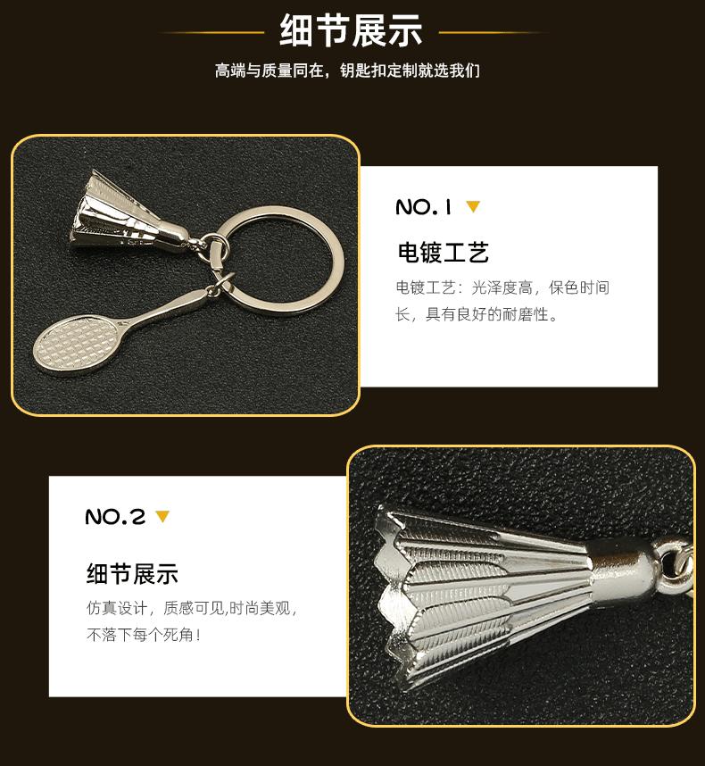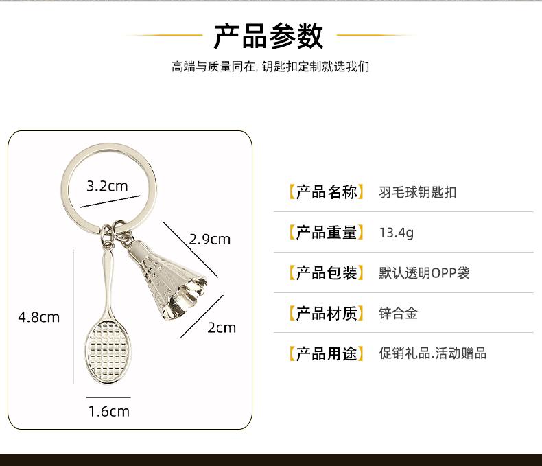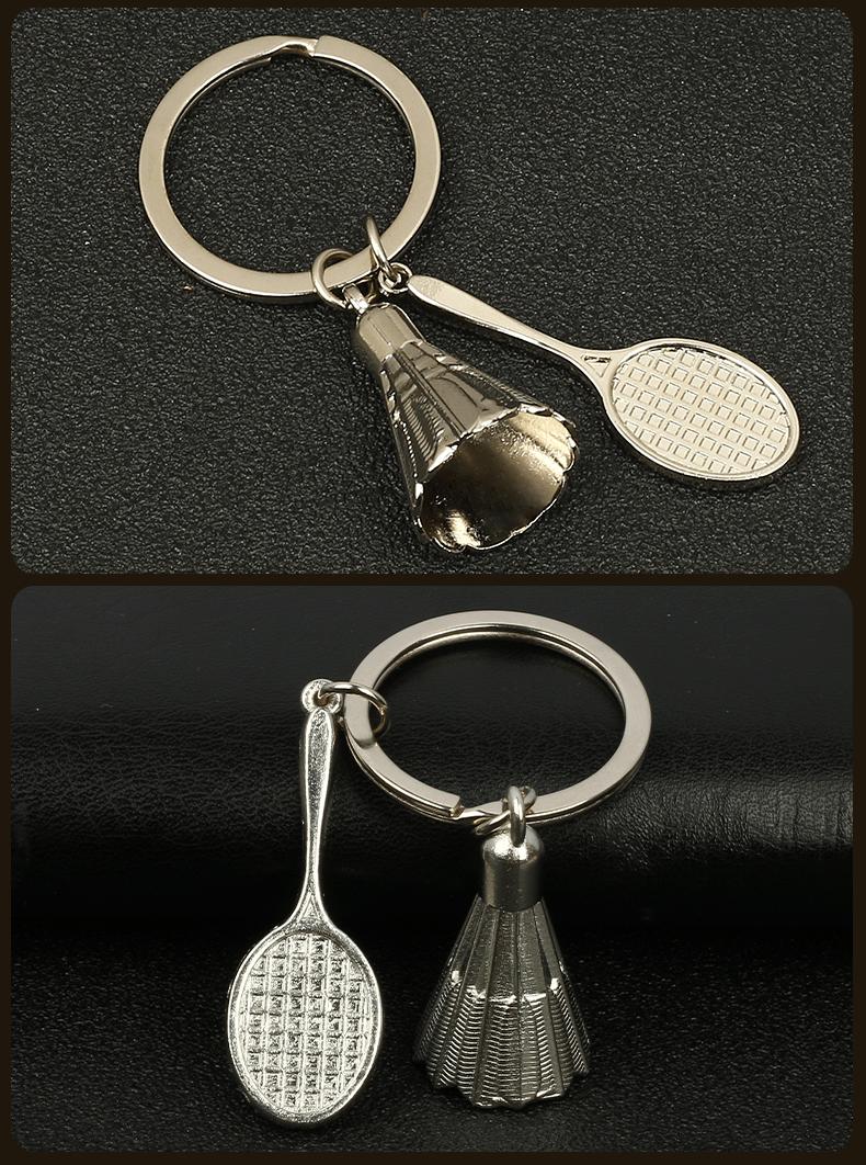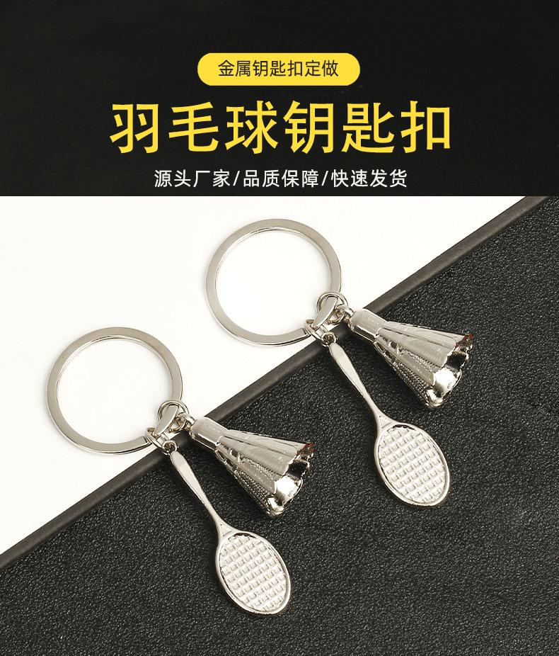 Venta al por mayor de pequeños regalos transfronterizos, gran oferta, colgante para bolso de coche, llavero creativo de metal, llavero de bádminton