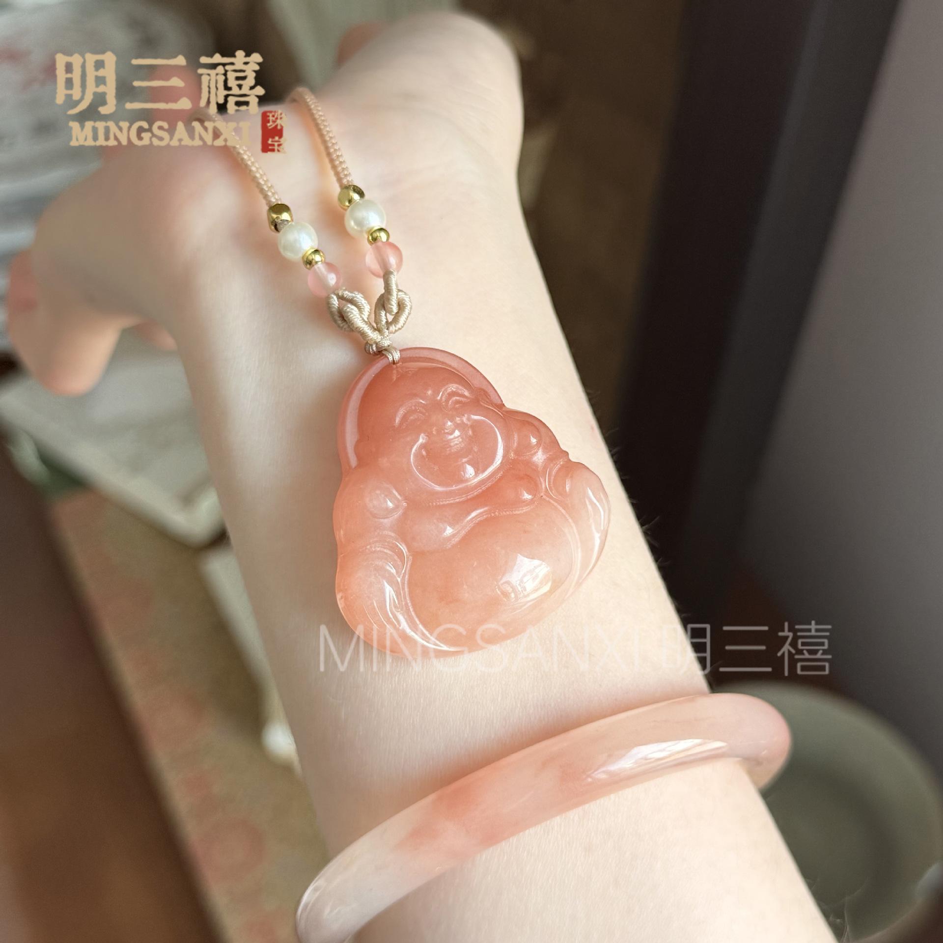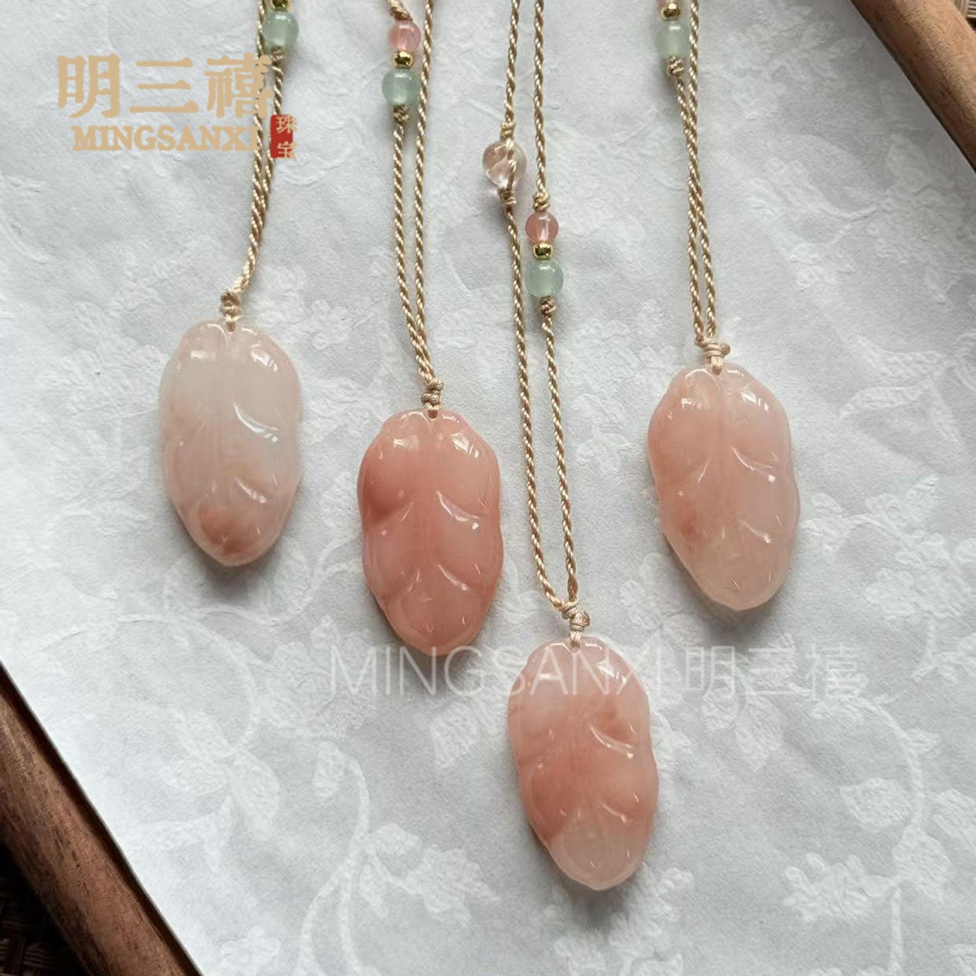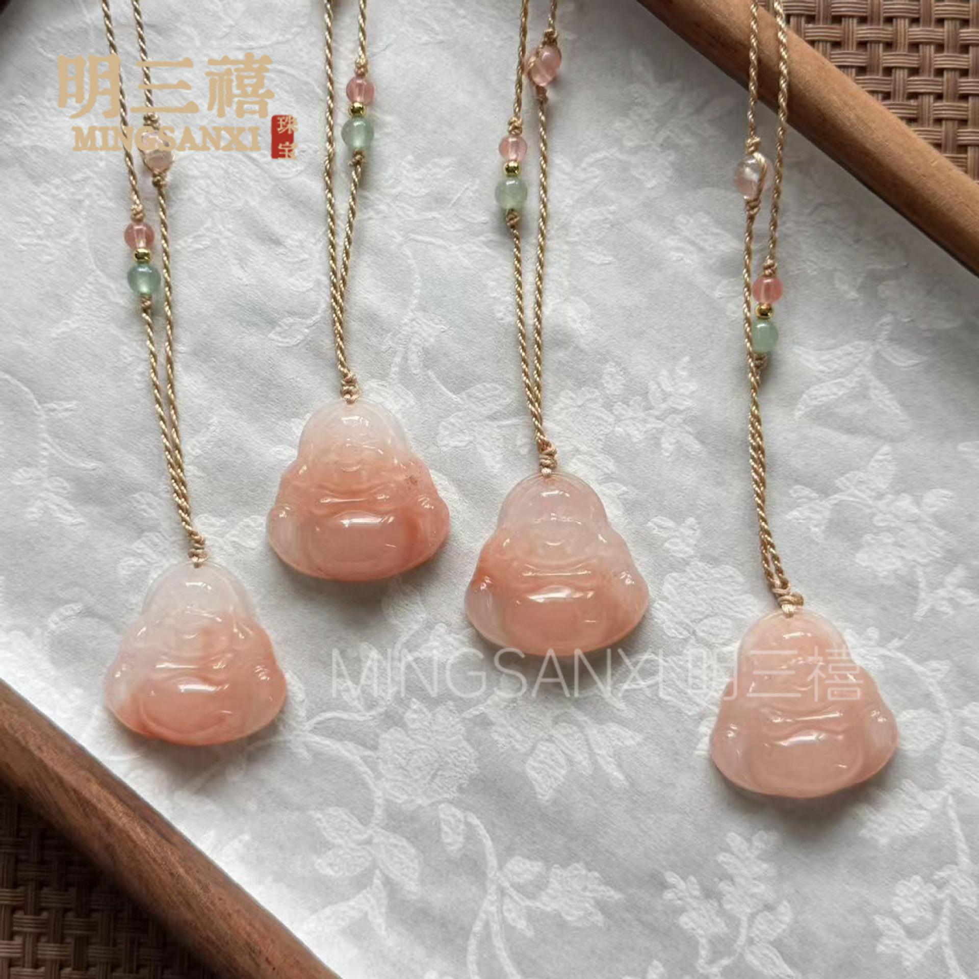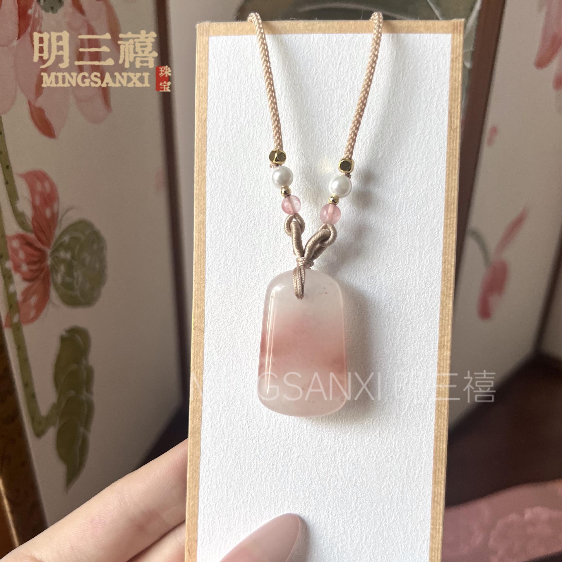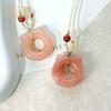 Colgante de jade con hebilla de ping-an, de seda dorada natural de Xinjiang, con hebilla de ping-an rosa y color vino de flor de melocotón.