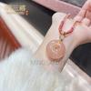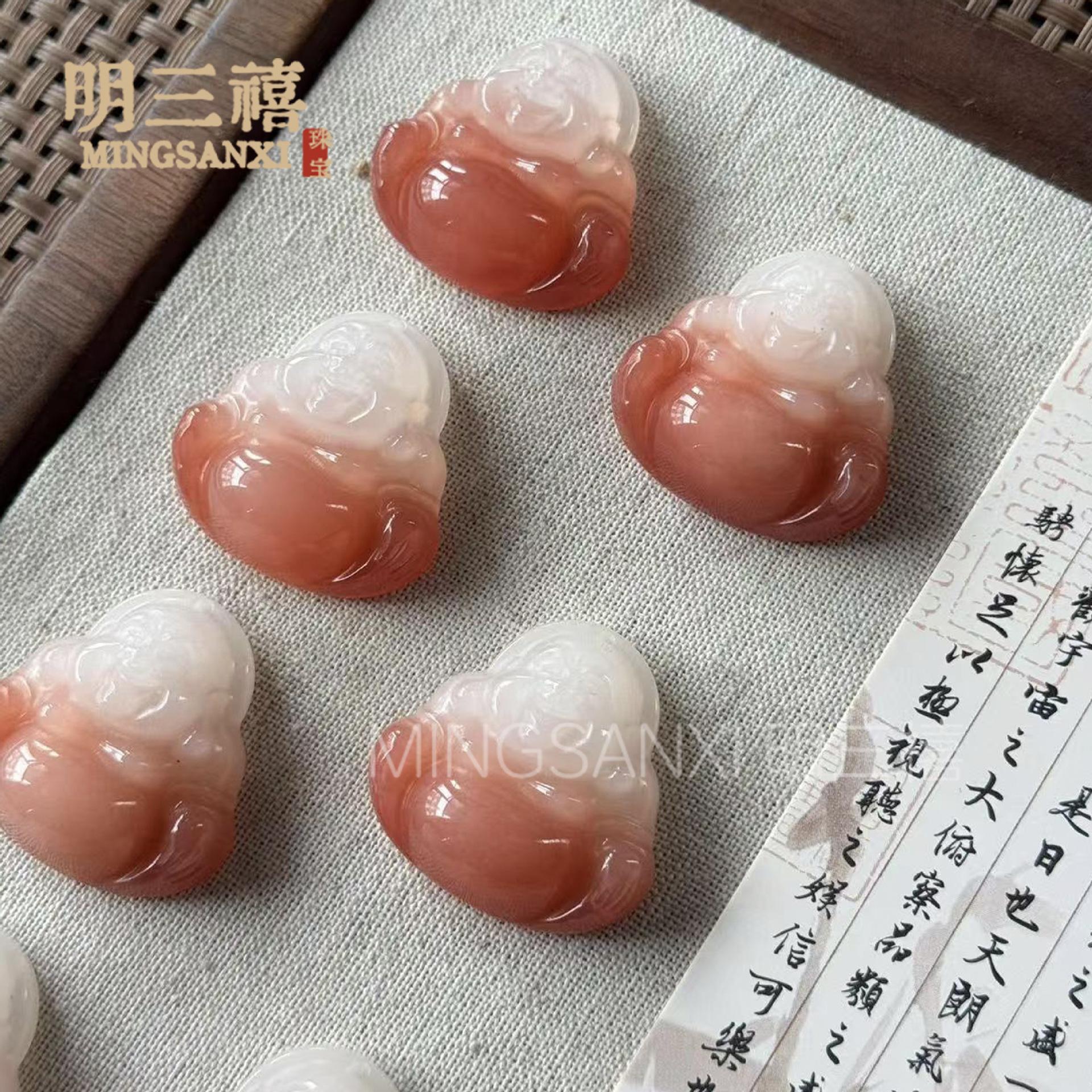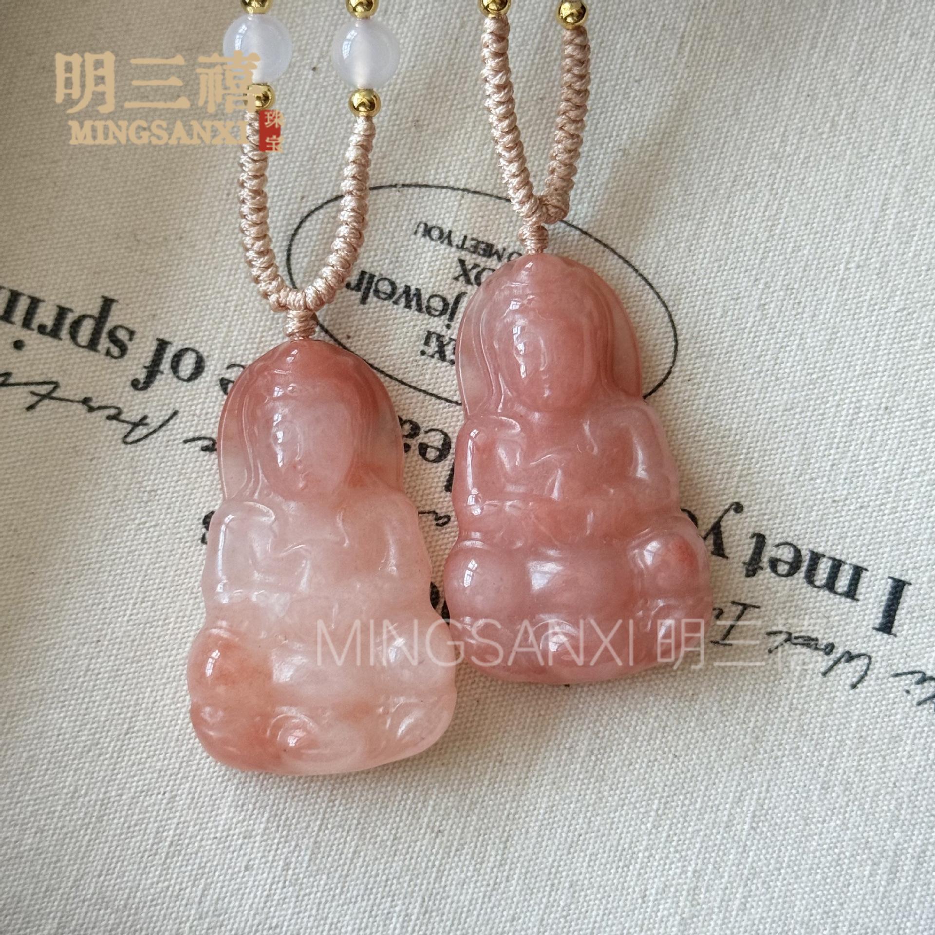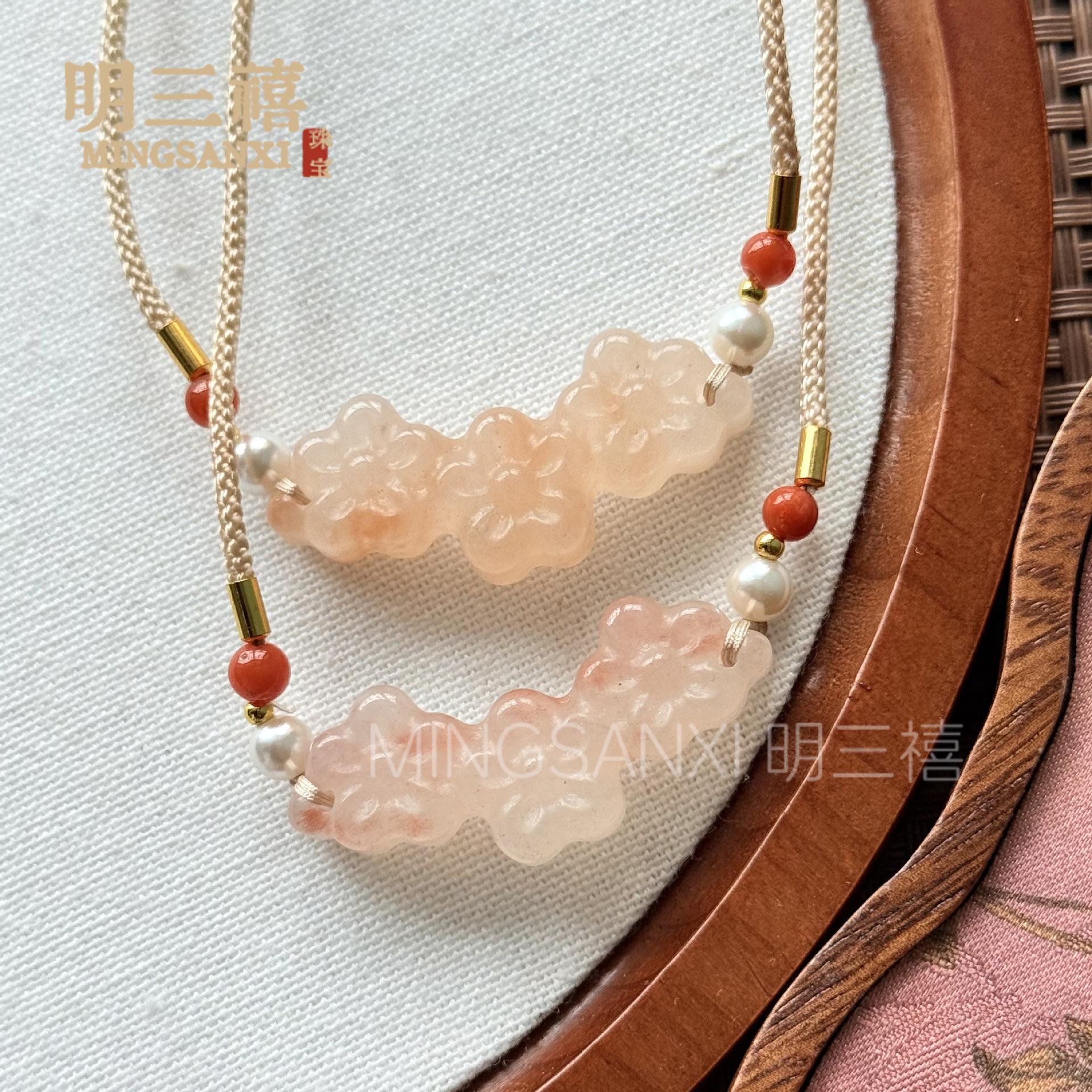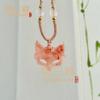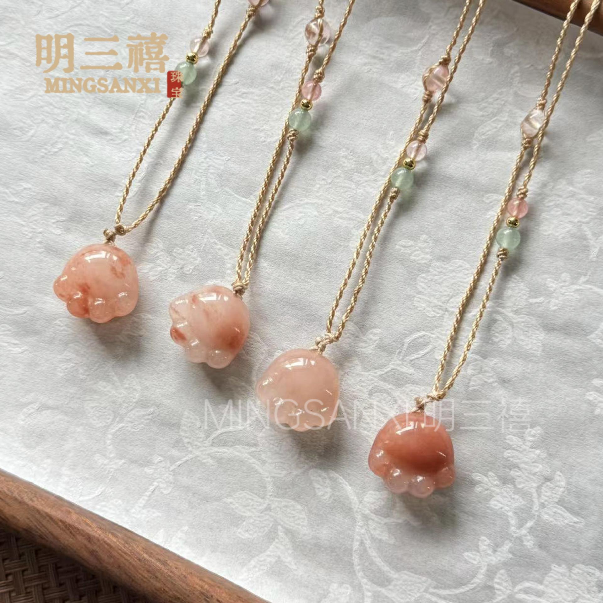 Colgante de jade con hebilla de ping-an, de seda dorada natural de Xinjiang, con hebilla de ping-an rosa y color vino de flor de melocotón.