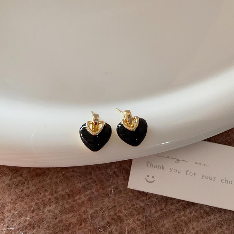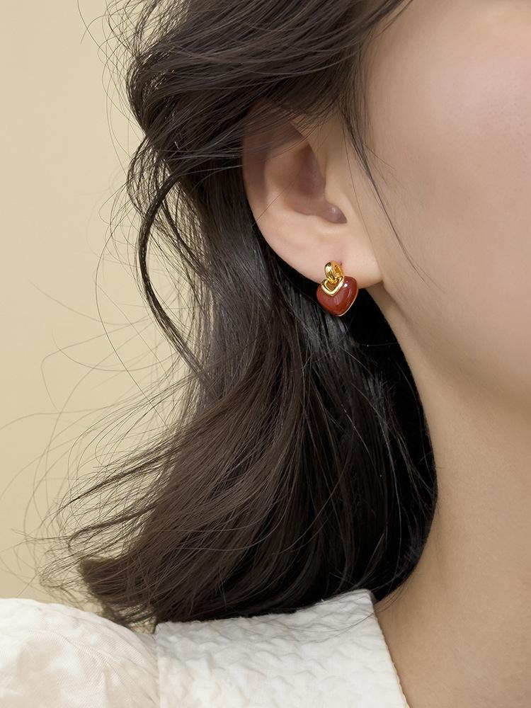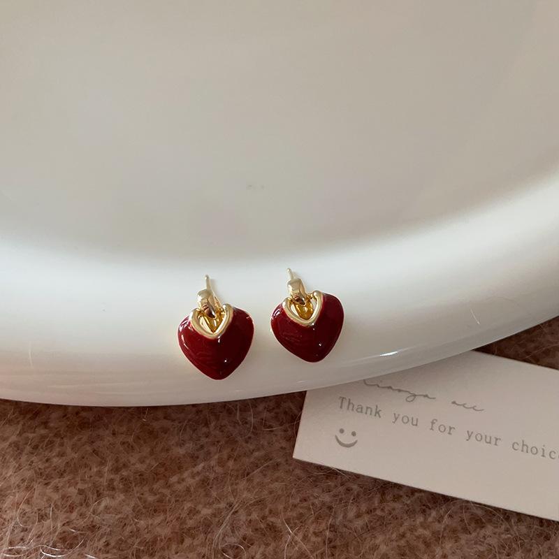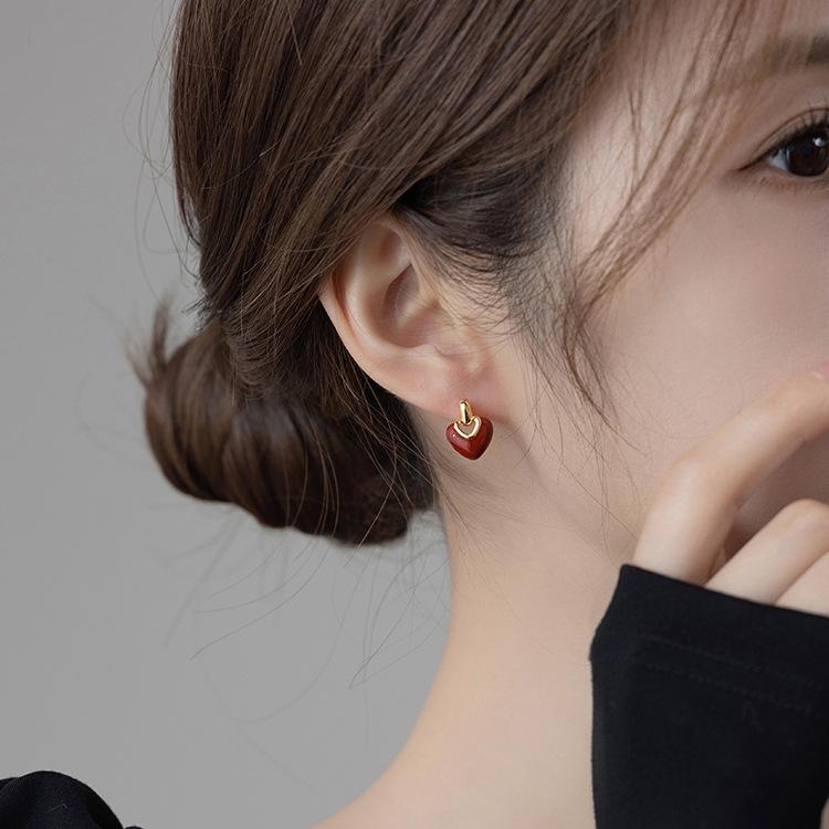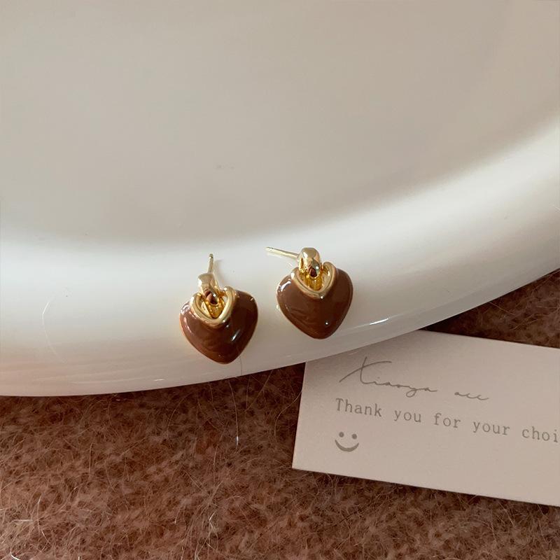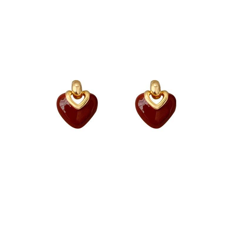Coffee Glaze Love Stud Earrings, Wine red drop glaze stud earrings, Black Glaze Love Stud Earrings