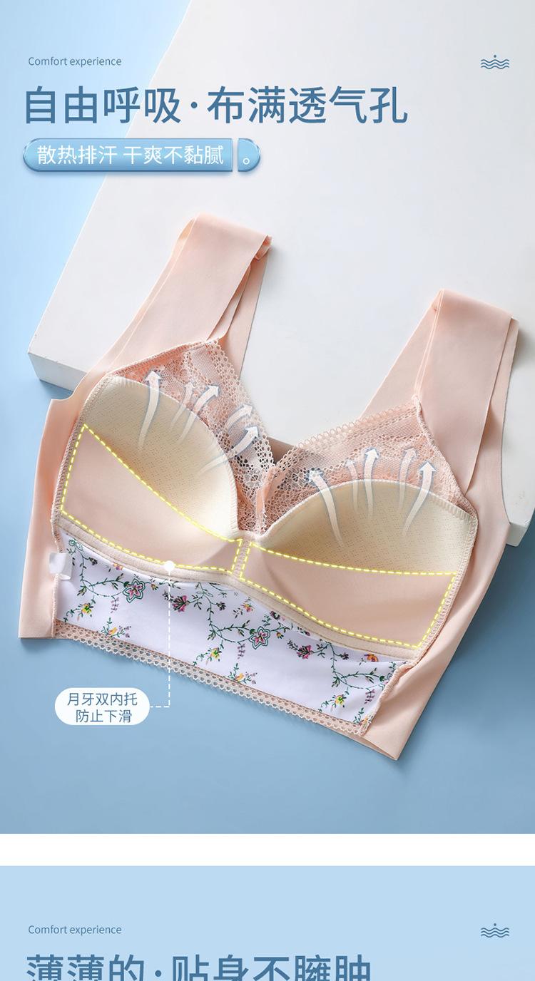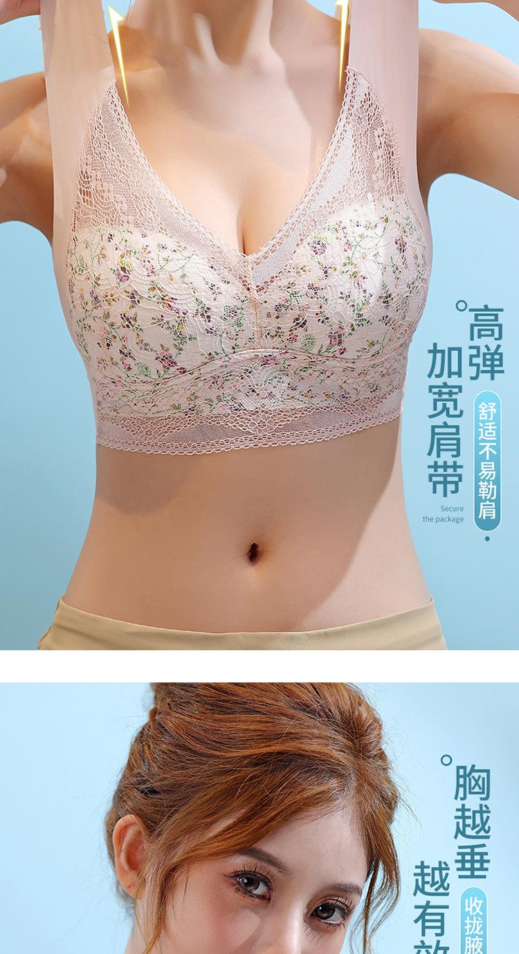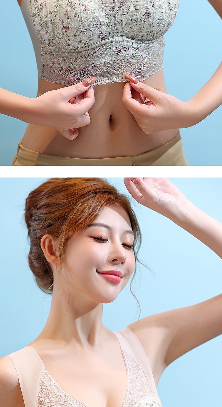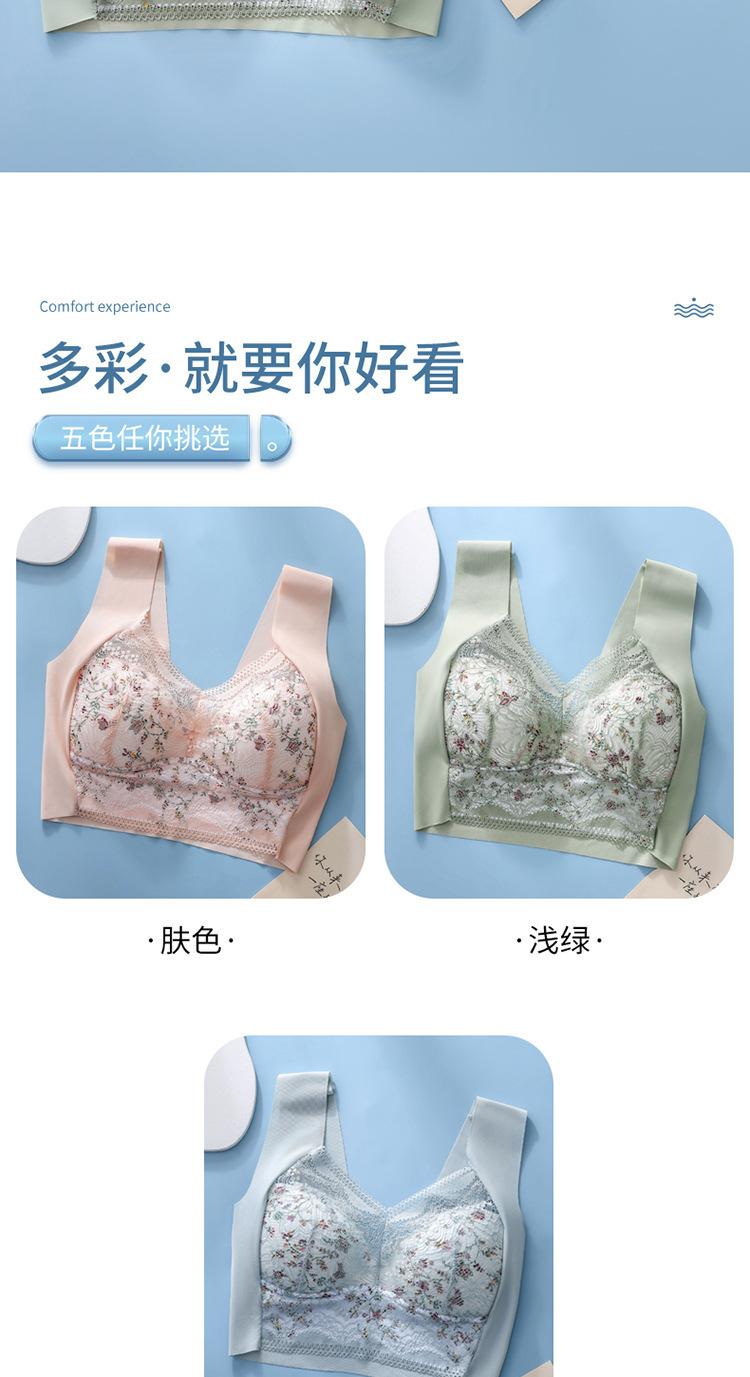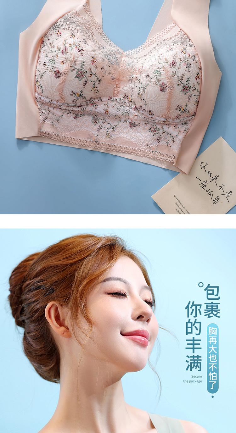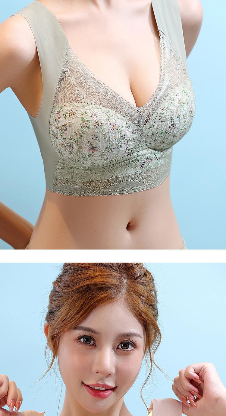 Sujetador de Encaje Sin Costuras Sin Aros Push-Up Copa Tipo Chaleco Fijo Pechos Grandes Adelgazante Ropa Interior Estilo Fino para Mujer