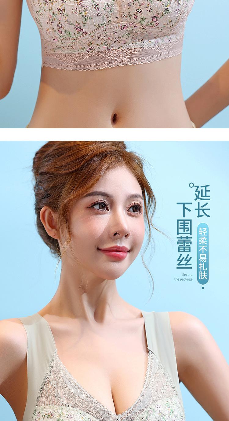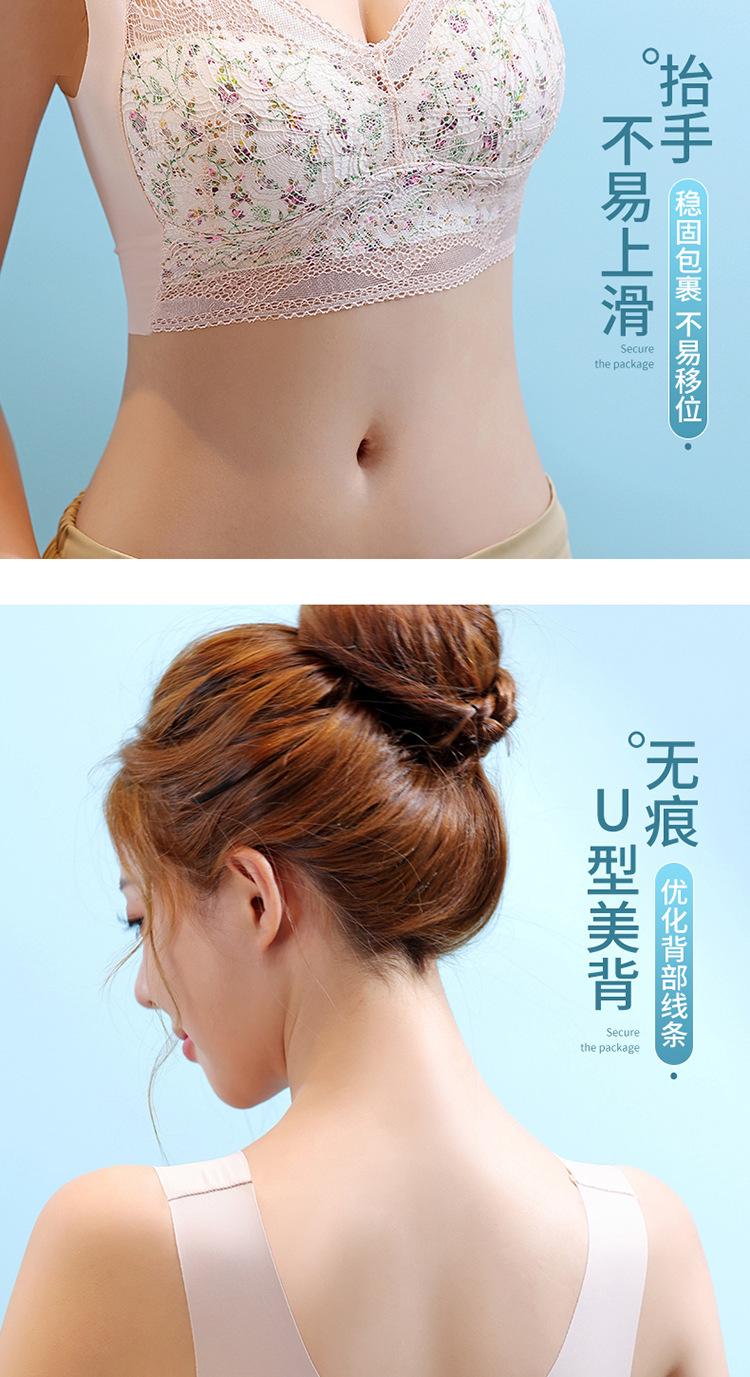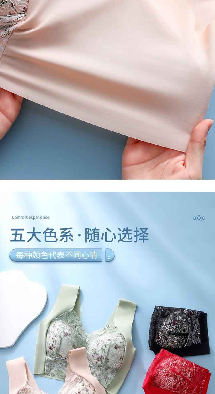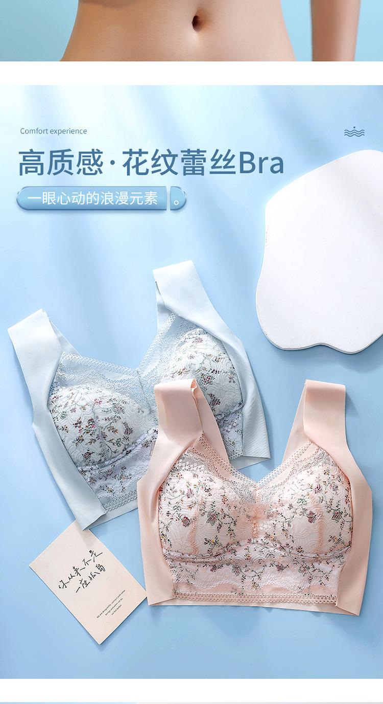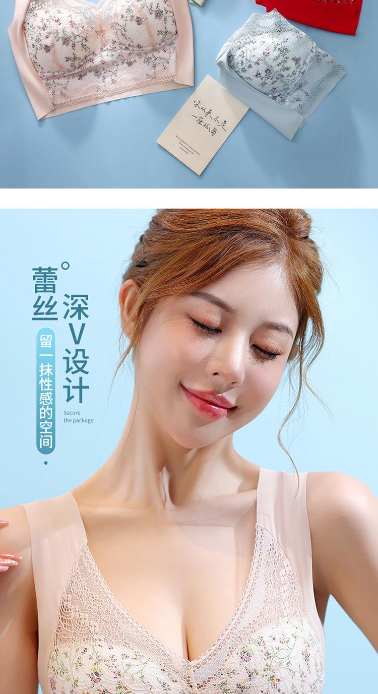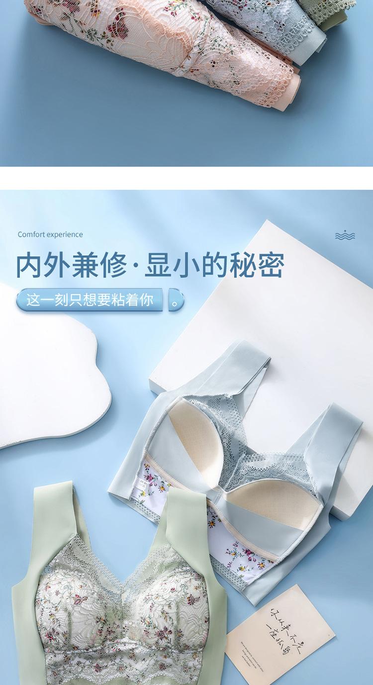 Sujetador de Encaje Sin Costuras Sin Aros Push-Up Copa Tipo Chaleco Fijo Pechos Grandes Adelgazante Ropa Interior Estilo Fino para Mujer