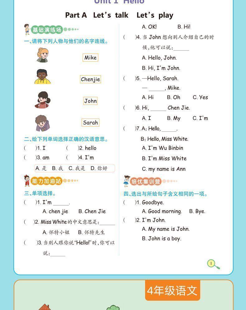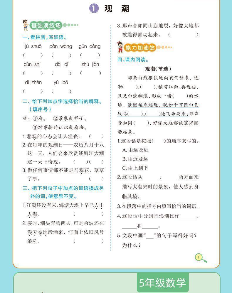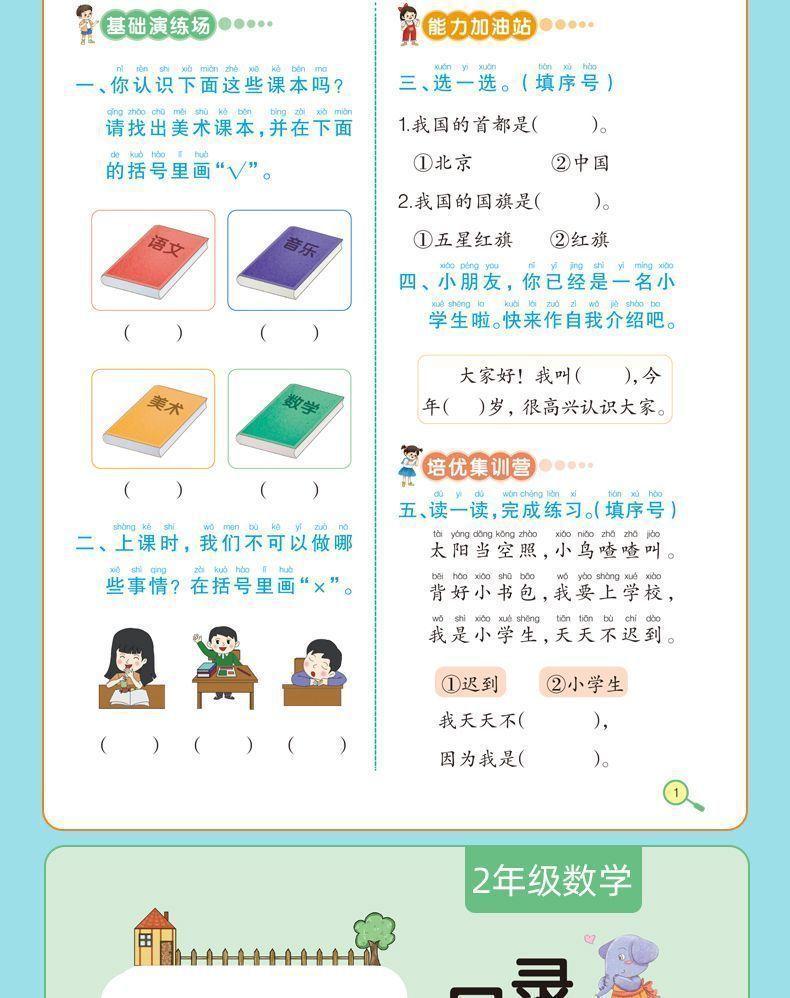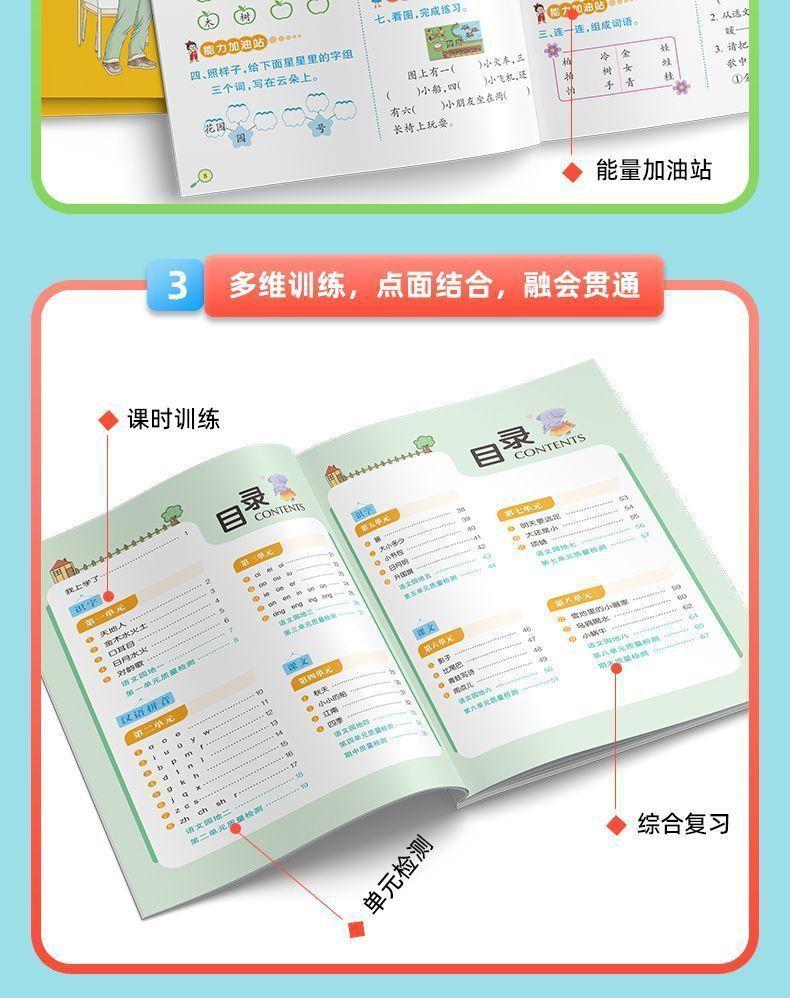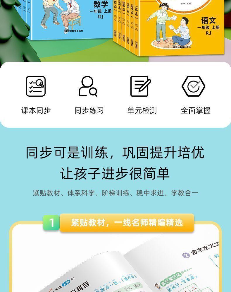 Preguntas de entrenamiento sincrónico de primer volumen de los grados uno, dos, tres, cuatro, cinco y seis Libro de ejercicios sincrónicos de chino y matemáticas en inglés Edición de educación popular