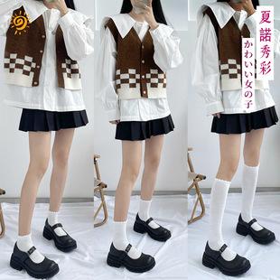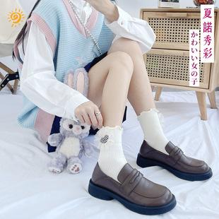 Xia Nuo Zhuji calcetines JK algodón mujer mayoreo jacquard delgados estilo japonés calcetines de media caña boca burbuja casuales hasta la pantorrilla