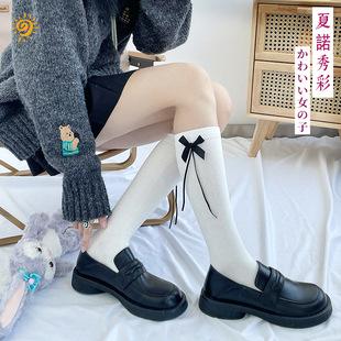 Xia Nuo Xiucai calcetines JK blancos calcetines hasta la pantorrilla con lazo calcetines lolita lindos calcetines lolita de tubo largo