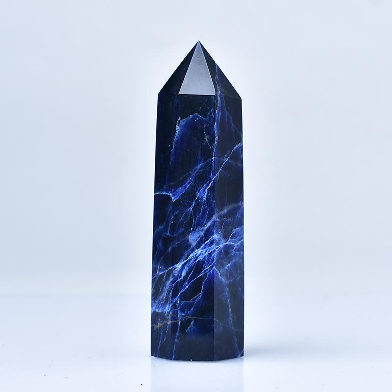 Pilar de piedra azul natural, columna de cristal con patrón azul, columna de una sola punta, piedra original con borde cruzado, nuevos adornos de tallado de cristal