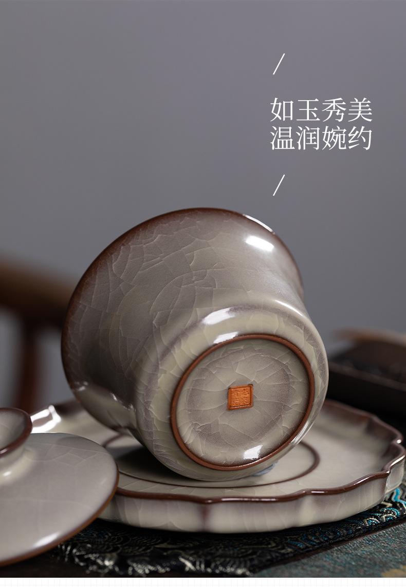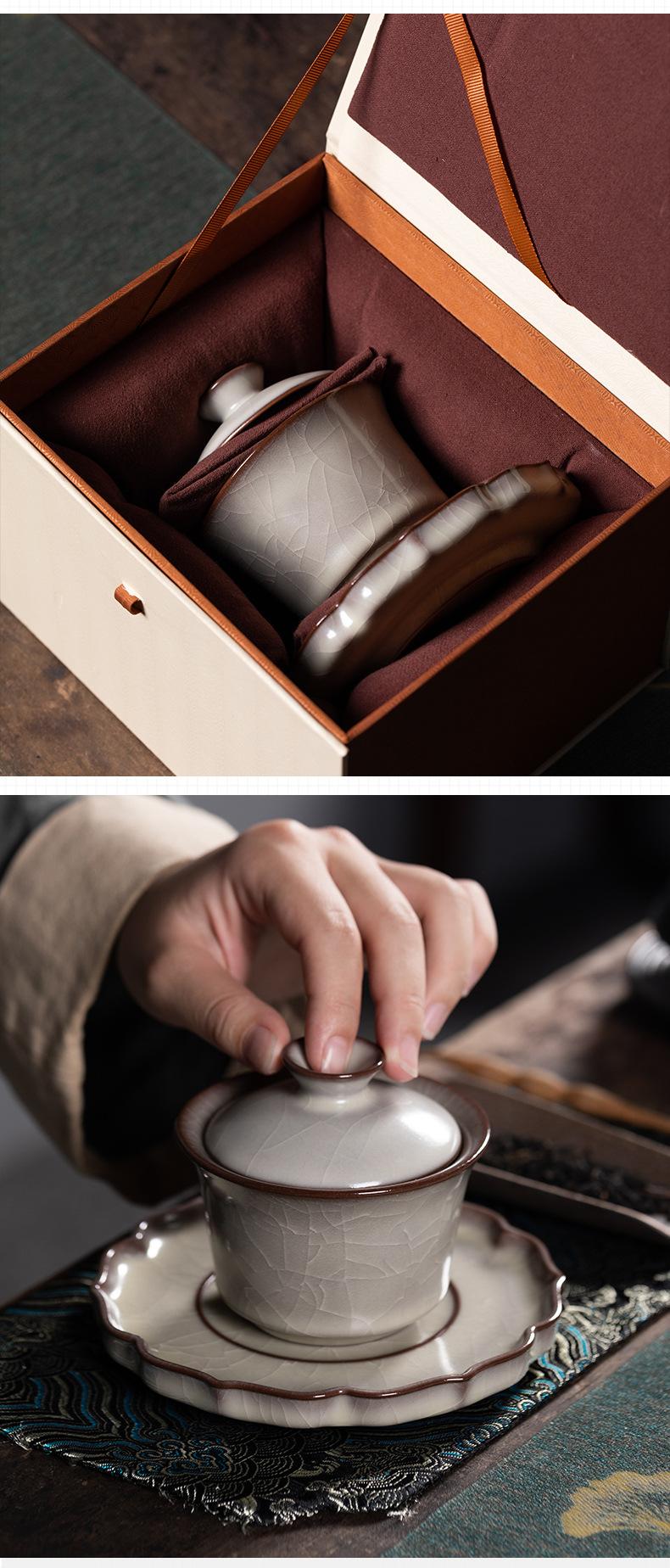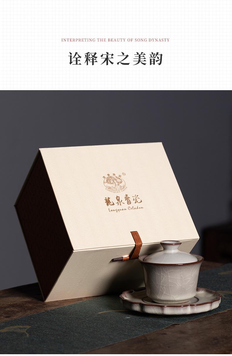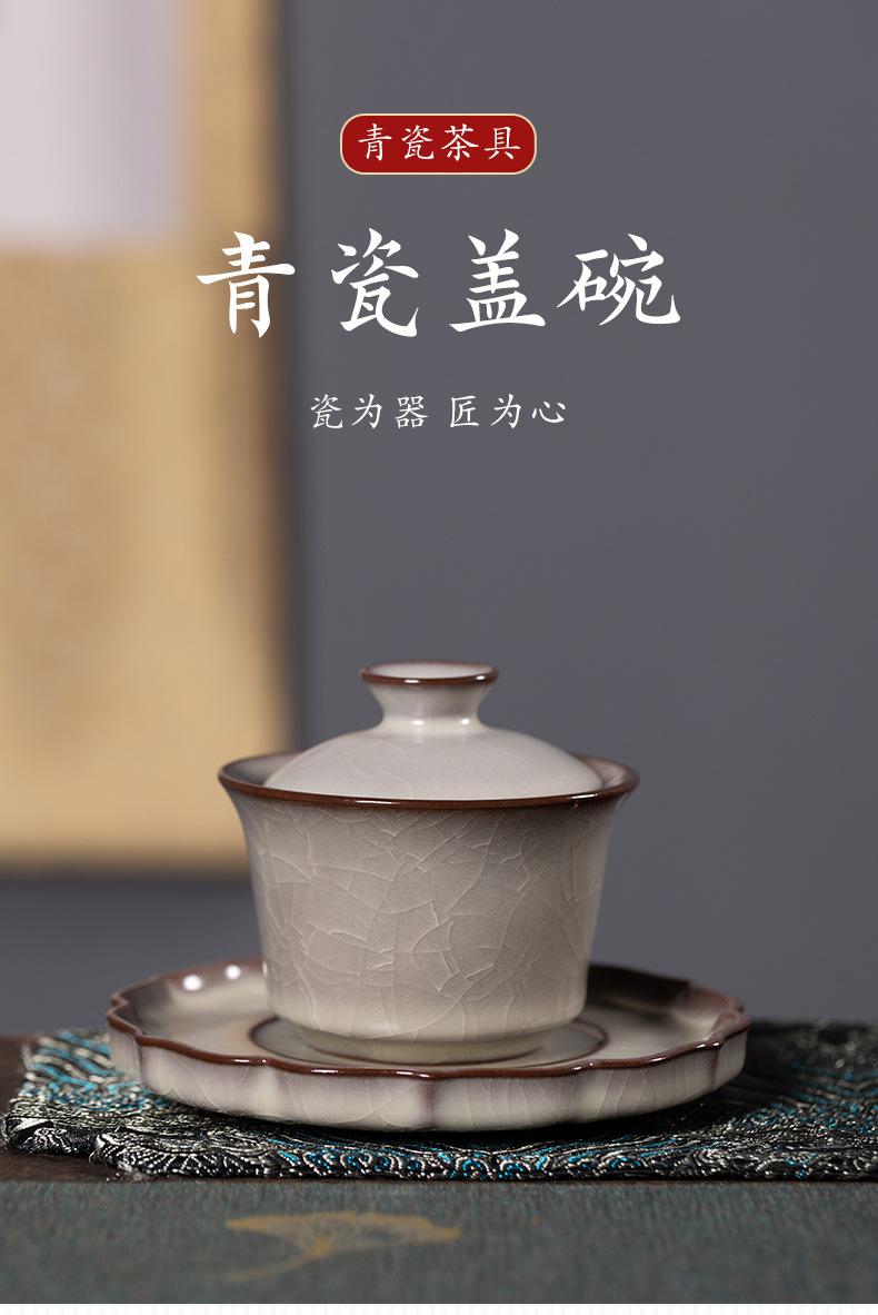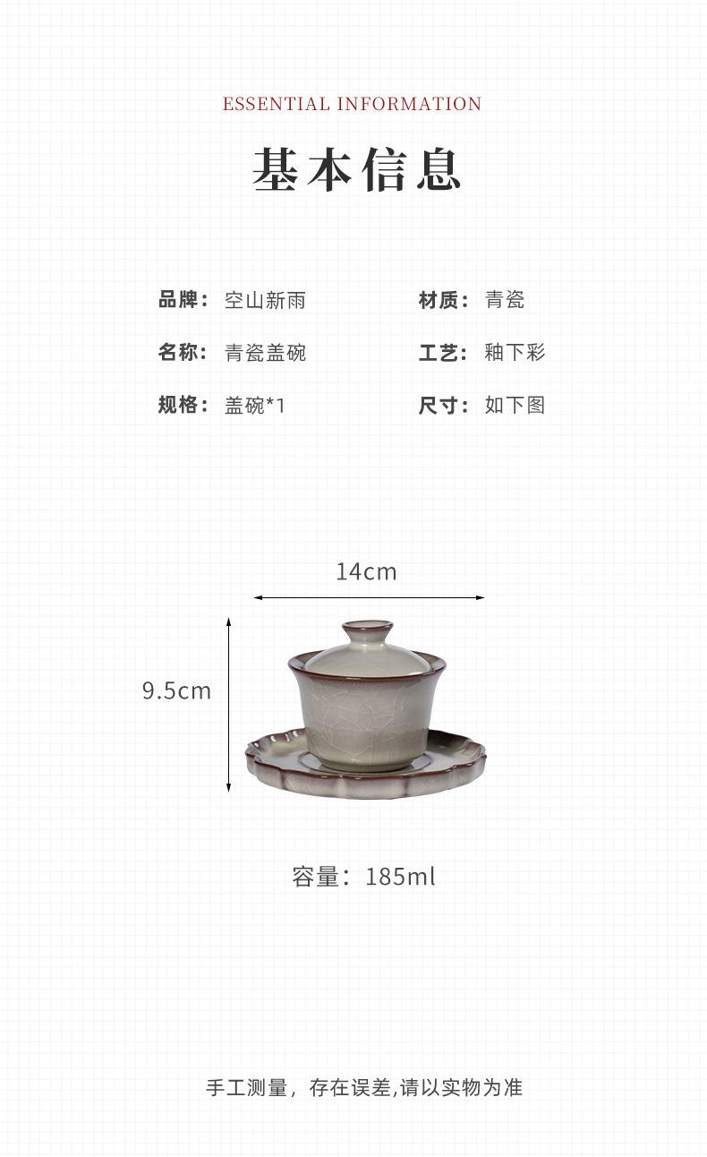 Cuenco de té de kung fu con tres tapas de celadón de Longquan de montaña vacía, cuenco de té de cerámica de mano, cuenco de té de pieza abierta de horno Ge