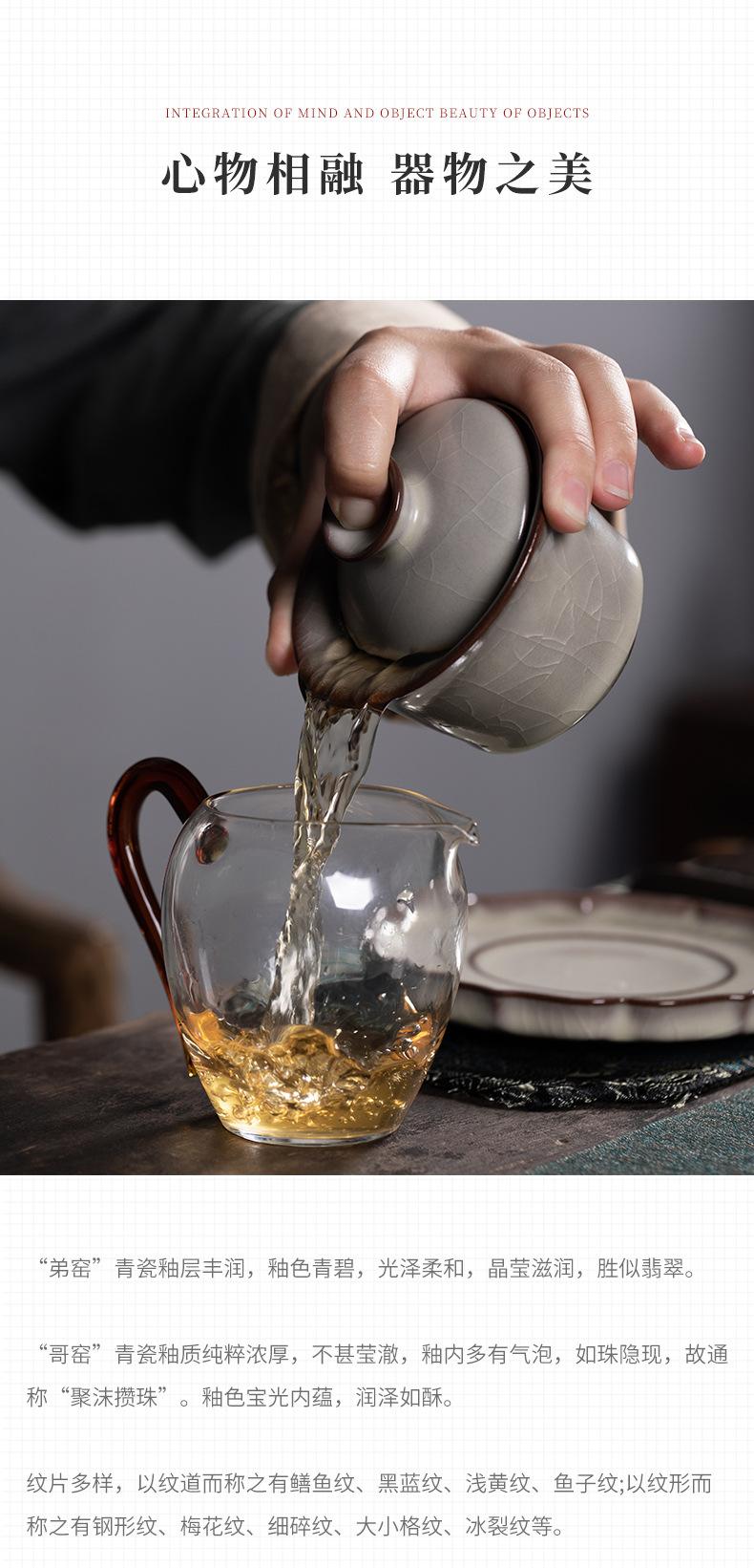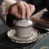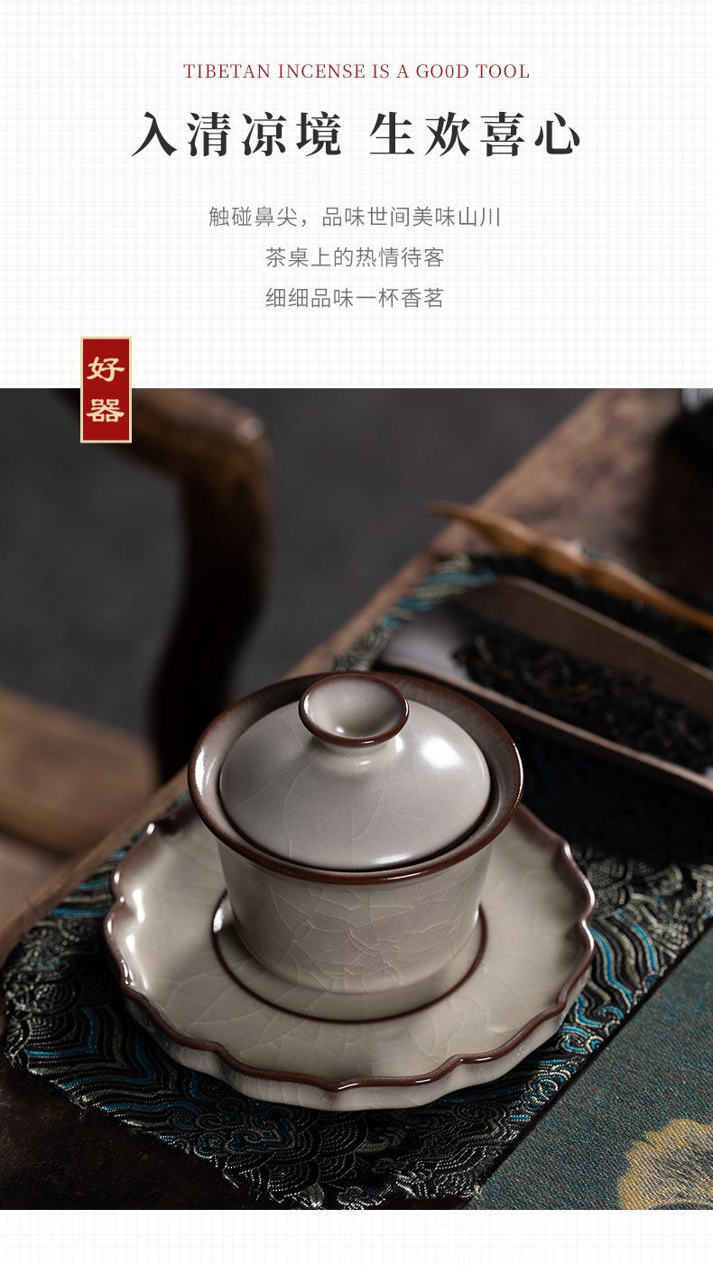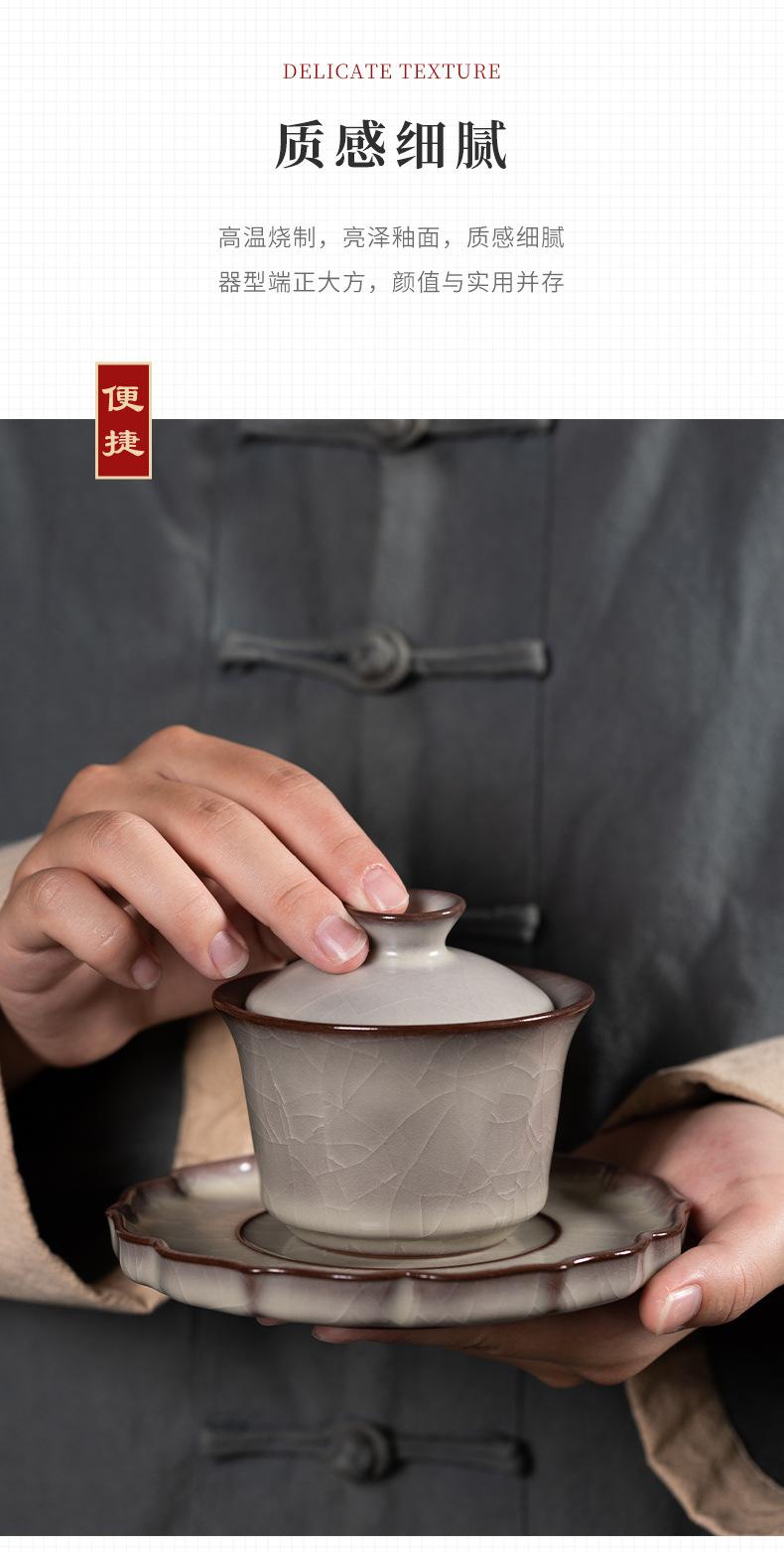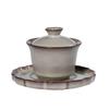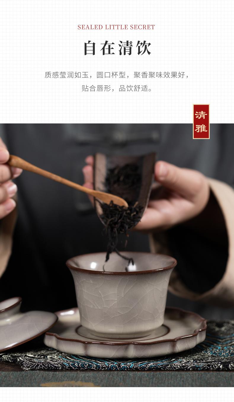 Cuenco de té de kung fu con tres tapas de celadón de Longquan de montaña vacía, cuenco de té de cerámica de mano, cuenco de té de pieza abierta de horno Ge