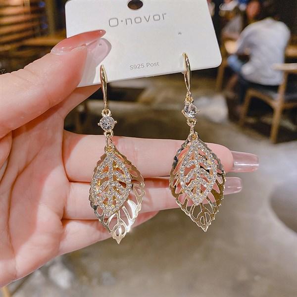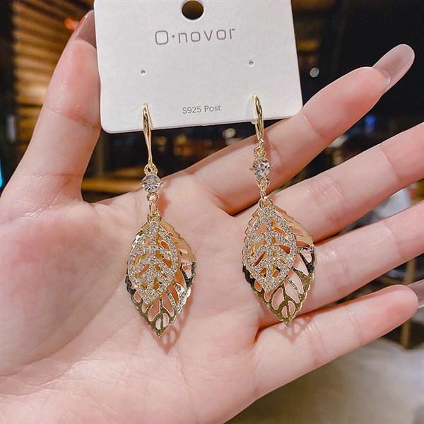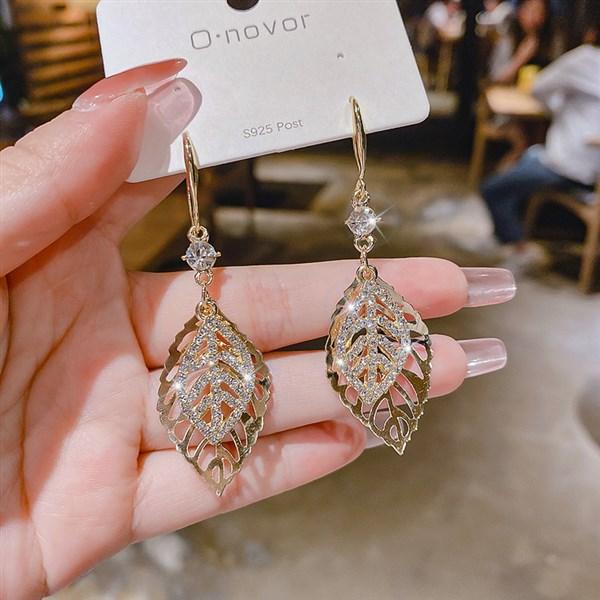 Pendientes de gancho para la oreja con diseño de hojas superllamativas de Dongdaemun de Corea del Sur, elegantes pendientes de personalidad de moda con celebridades de Internet para mujeres