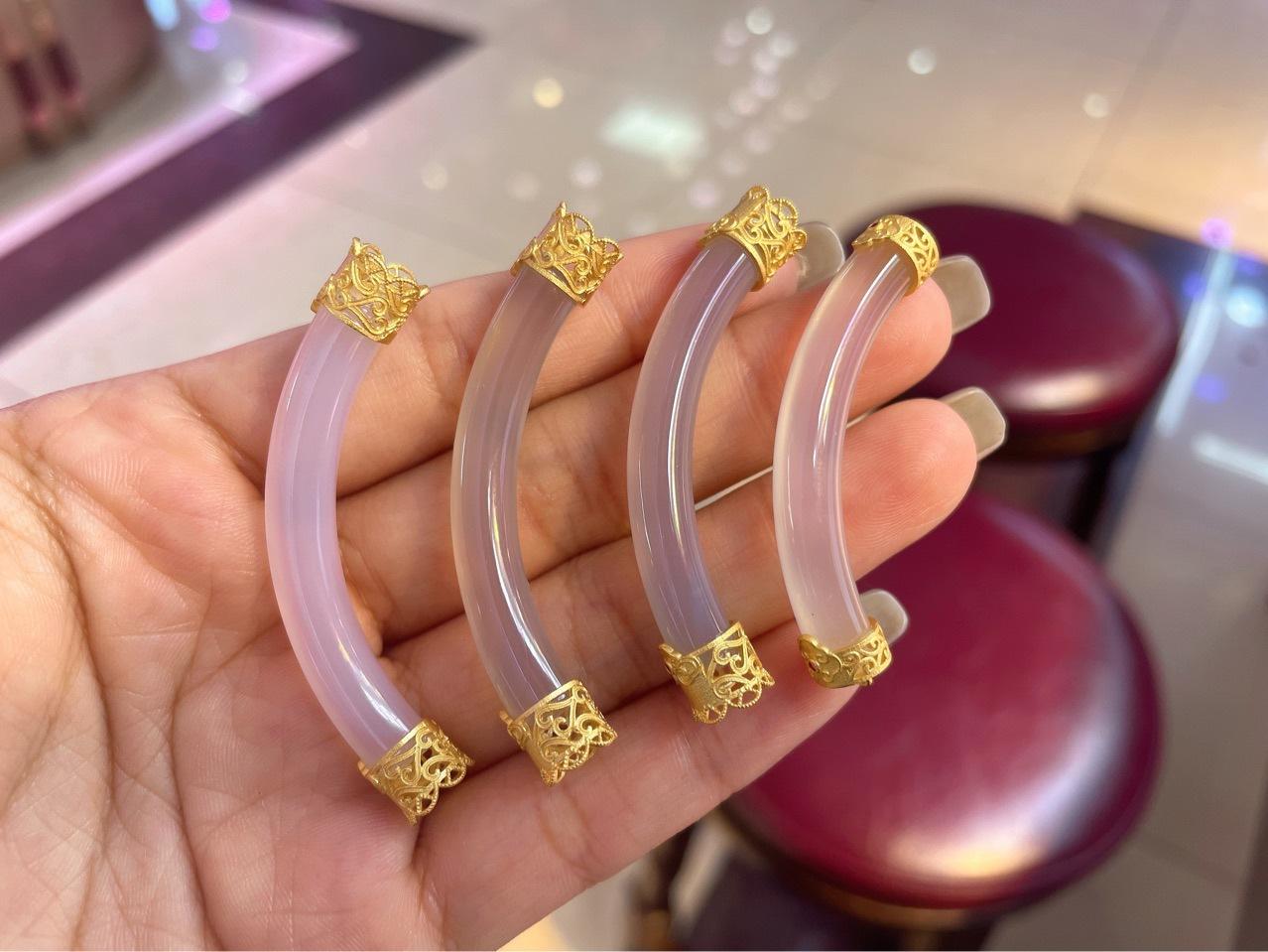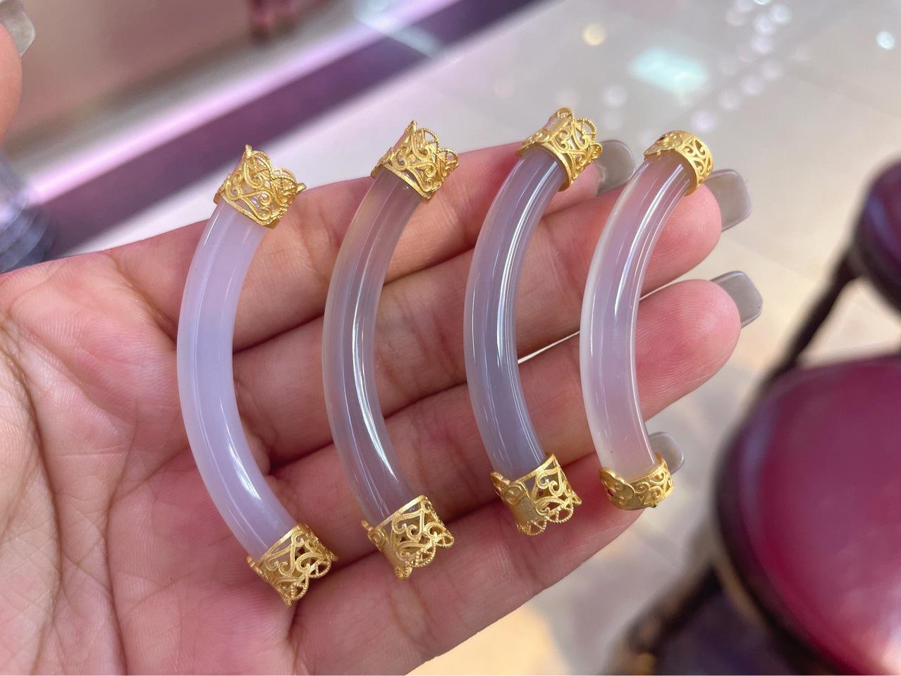 Type a white half-bracelet with copper inlay, Type a smoke purple half bracelet with copper inlay, Type b whit...