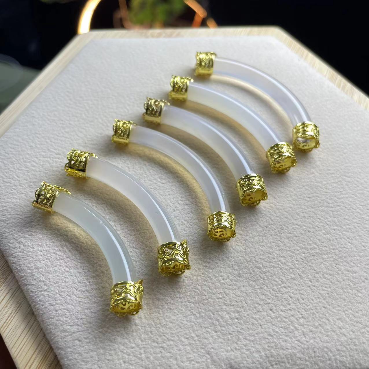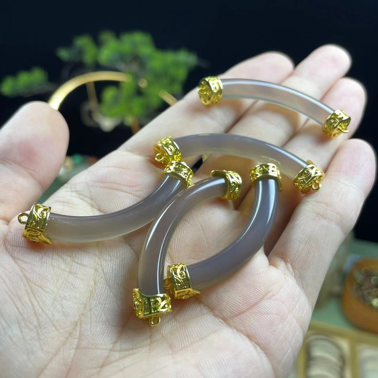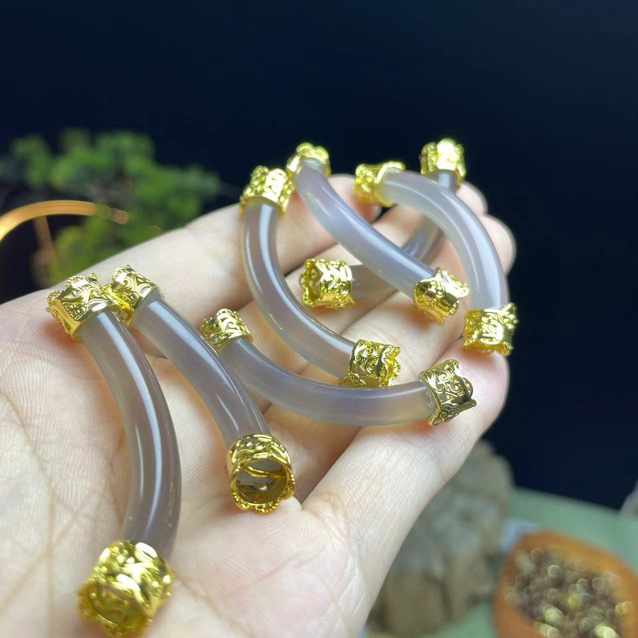 Venta al por mayor ágata calcedonia natural medio brazalete accesorios incrustados de cobre DIY joyería hecha a mano pulsera accesorios de pulsera
