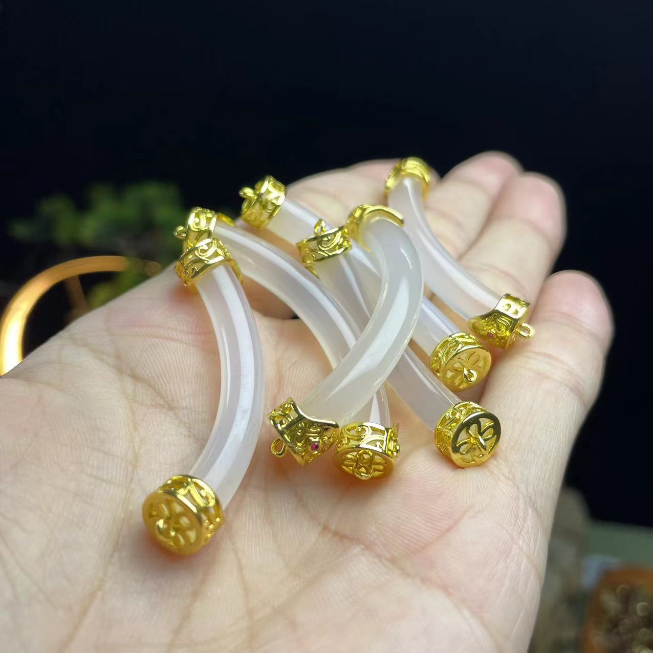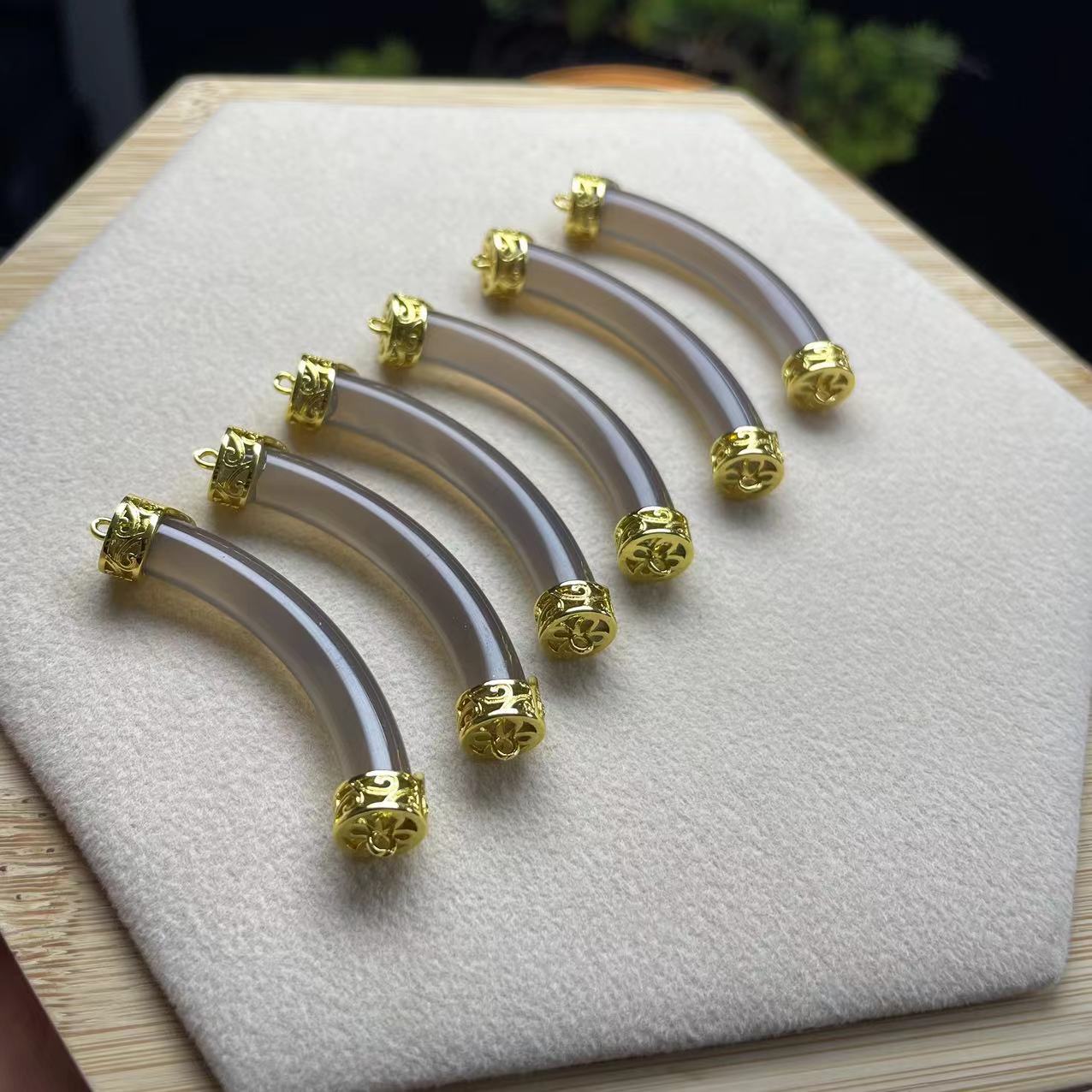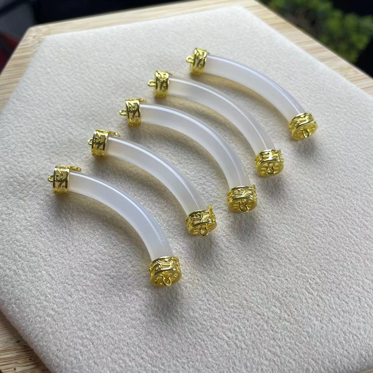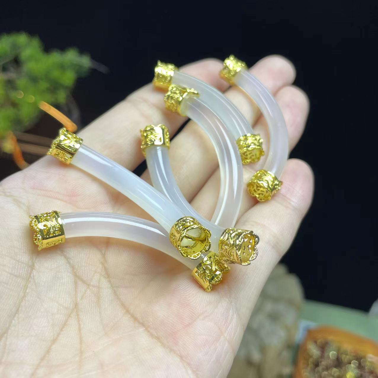Venta al por mayor ágata calcedonia natural medio brazalete accesorios incrustados de cobre DIY joyería hecha a mano pulsera accesorios de pulsera