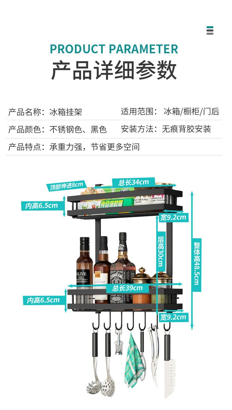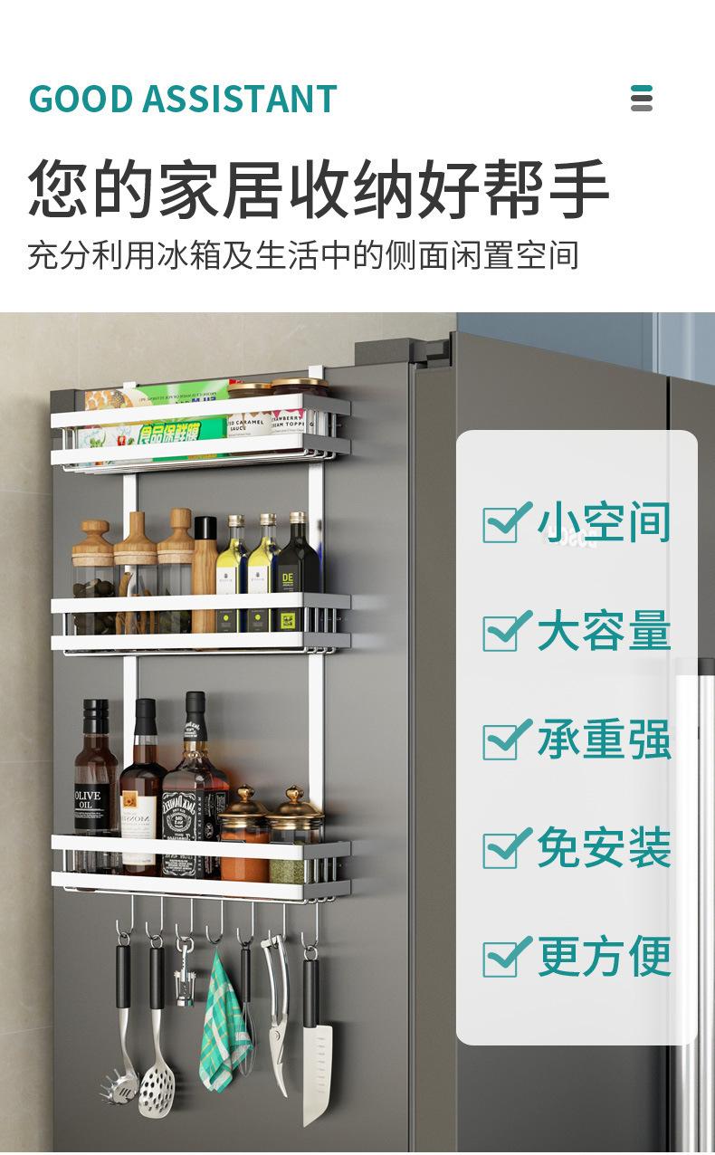 Refrigerador Estante de Almacenamiento Lateral Estante de Almacenamiento de Cocina sin Instalación Estante de Almacenamiento para Clasificación Estante de Almacenamiento de Condimentos de Absorción Magnética