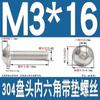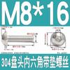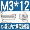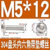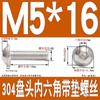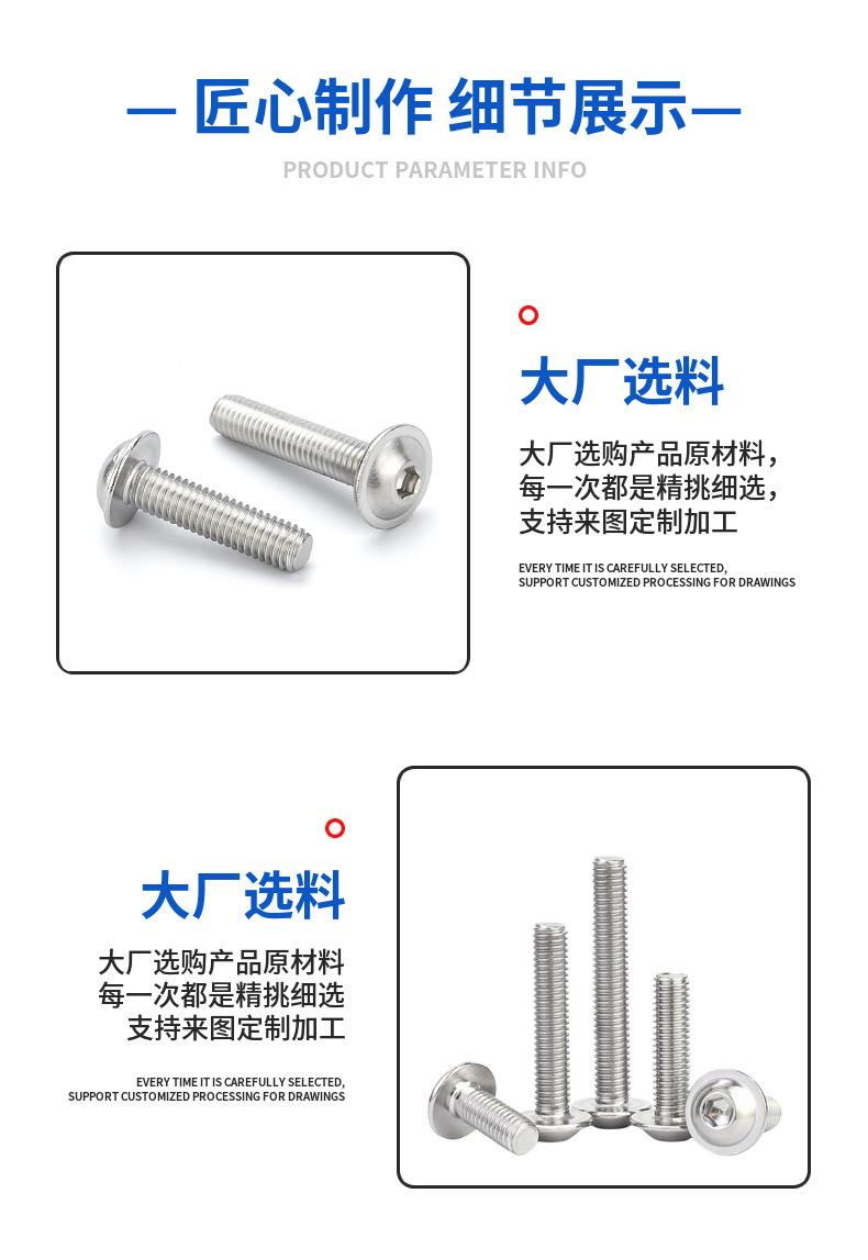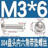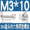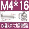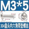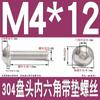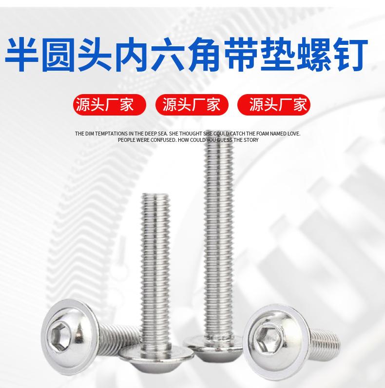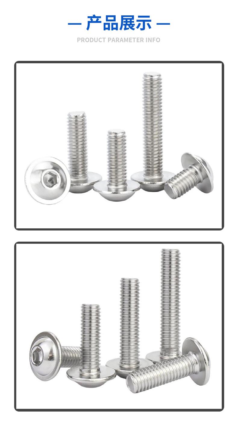 Tornillo de cabeza redonda hexagonal con almohadilla de acero inoxidable 304, tornillo de cabeza plana con forma de hongo, M3M4M5