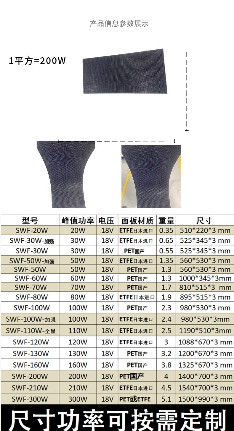 Panel solar flexible de silicio monocristalino SUNPOWER con textura grande ETFE30W100W200W.