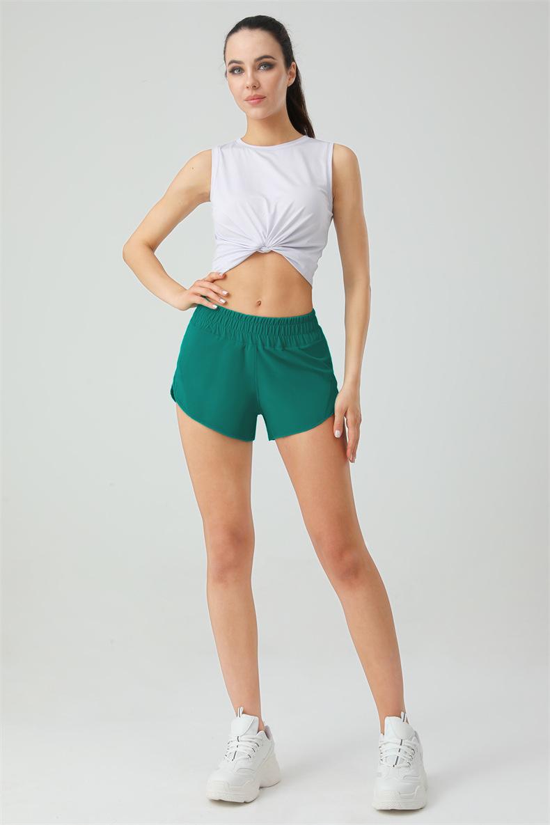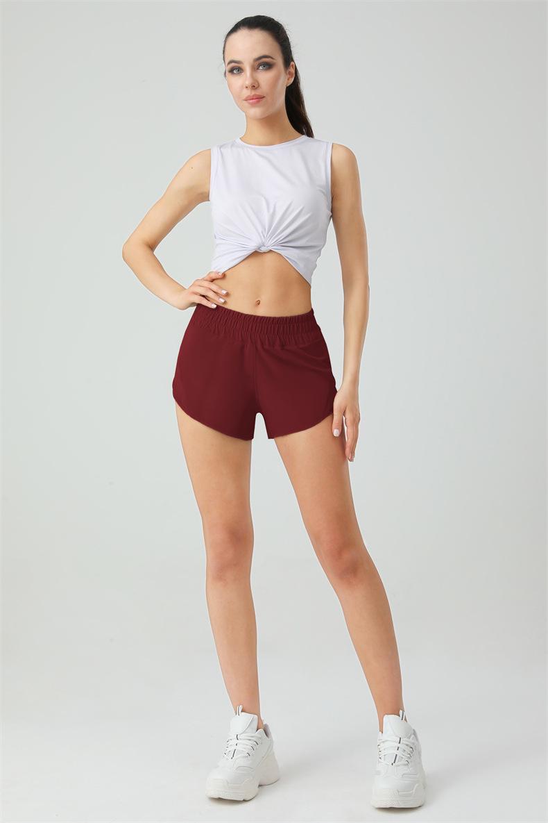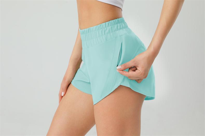 | Pantalones cortos deportivos transpirables de secado rápido de verano para mujer, pantalones cortos con tiras reflectantes transfronterizas europeas y americanas, pantalones cortos antiexposición a la cintura |