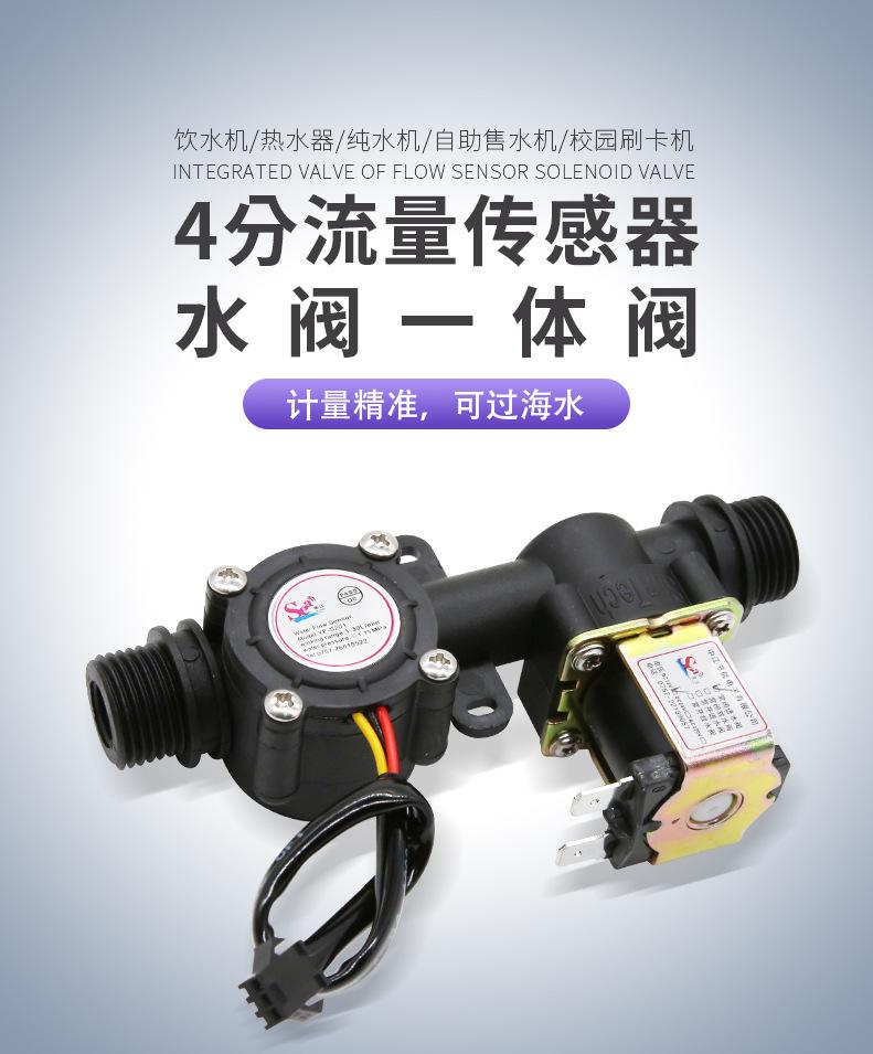 Sensor de Flujo de Agua Hall Máquina de Control de Agua de 4 Puntos Medidor de Flujo Hall Válvula Solenoide Medidor de Agua Multifunción Integrado