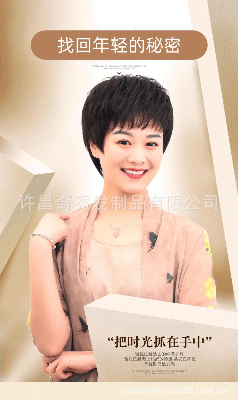 Pelucas Cortas Rizadas de Cabello Humano Real para Mujeres de Mediana Edad y Mayores con Diseño de Perm de Textura que Reduce la Edad