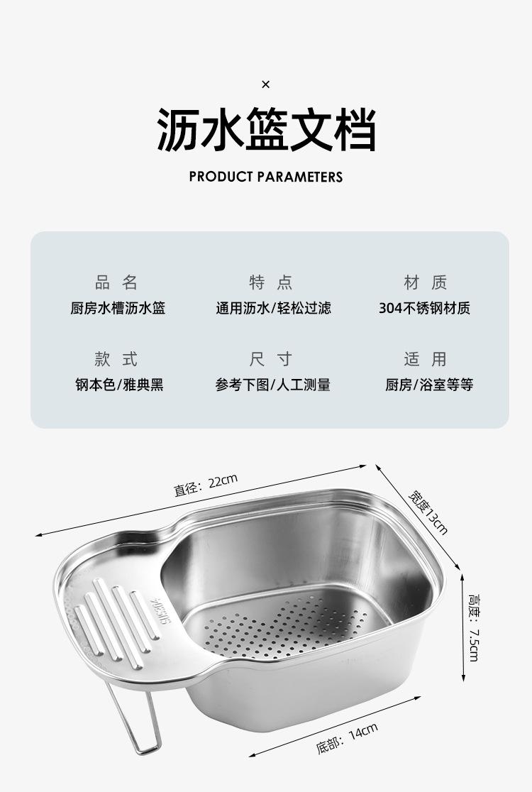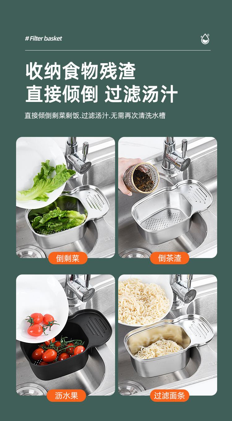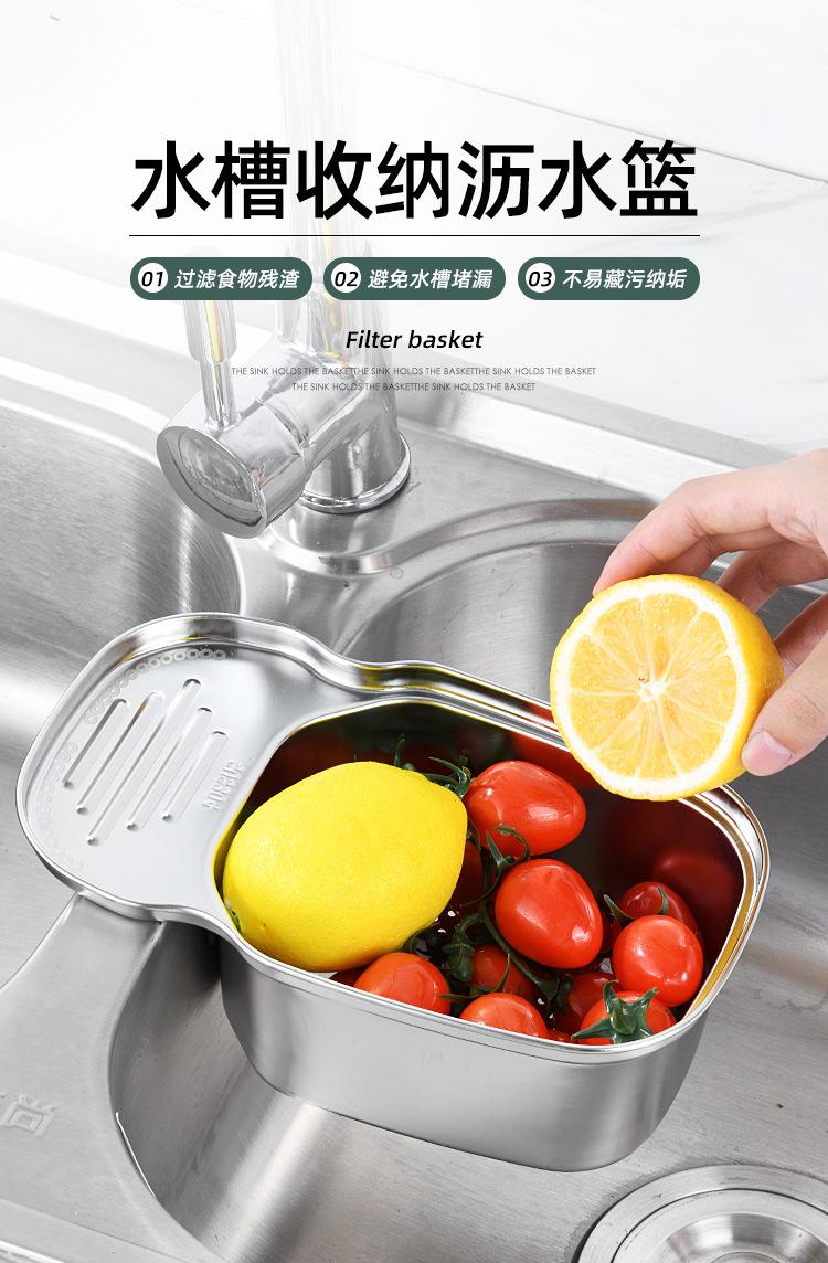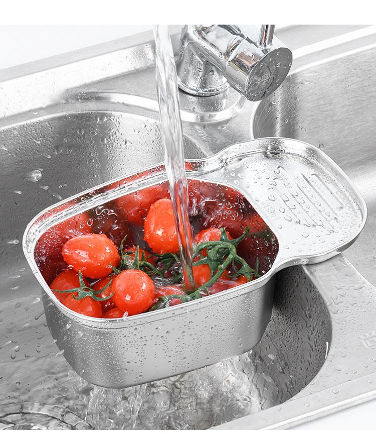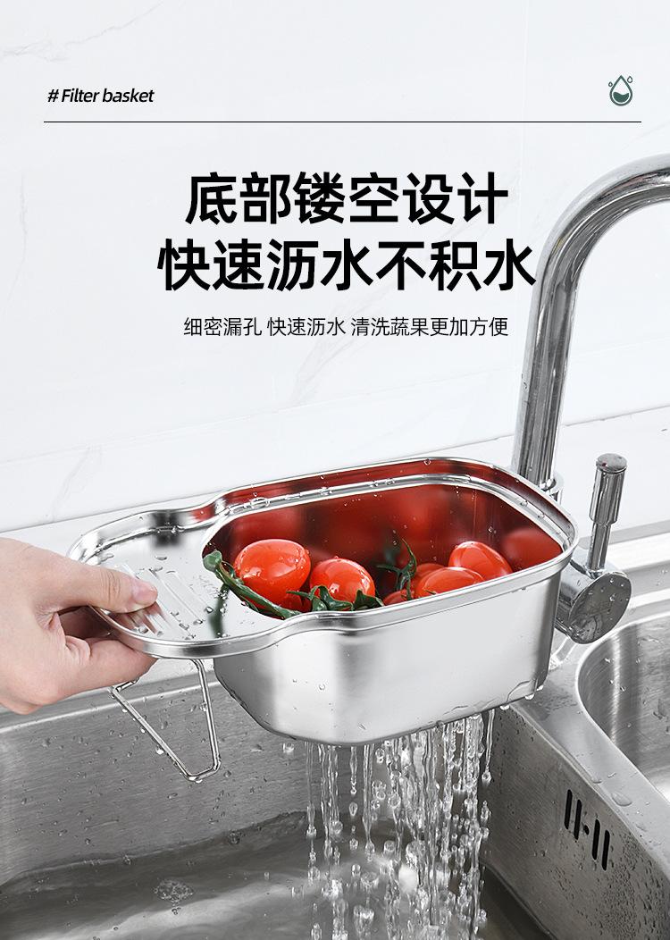 Cesta colador de fregadero de acero inoxidable 304, cesta de almacenamiento con filtro de cocina, cesta de almacenamiento para lavar verduras y frutas, estante de almacenamiento