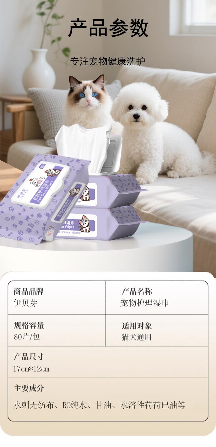 Toallitas Húmedas para Mascotas 80 Unidades para Gatos y Perros para Limpiar Manchas de Lágrimas, Limpiar Partes del Cuerpo, Toallitas Húmedas Limpiadoras Desodorizantes Sin Enjuague, Hidratantes