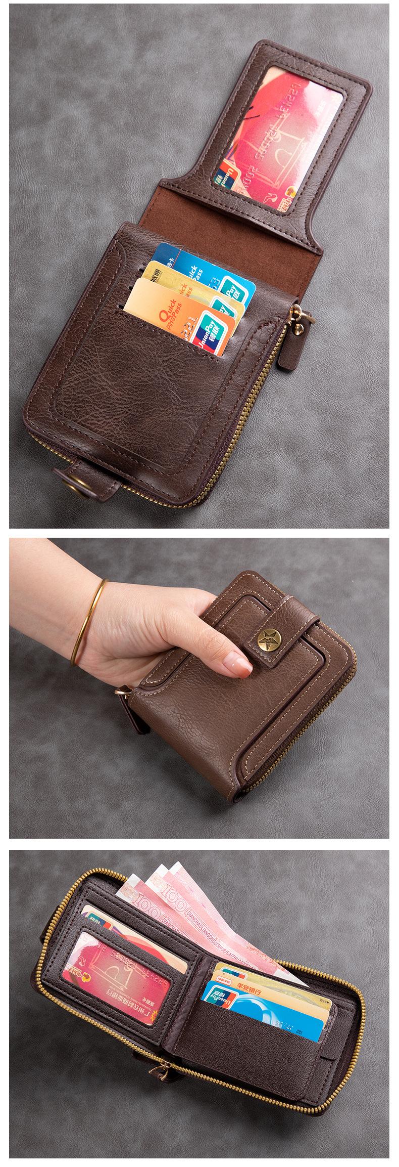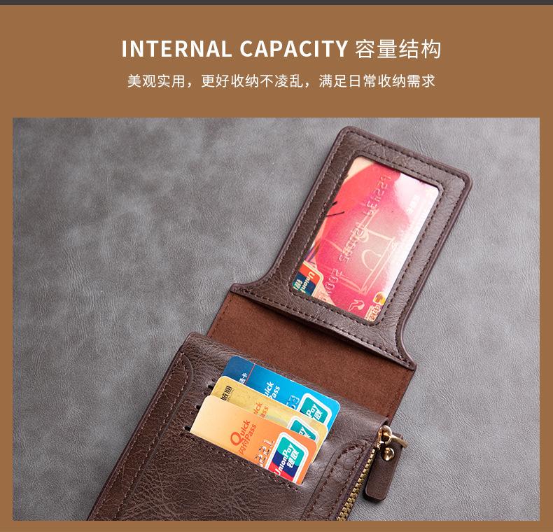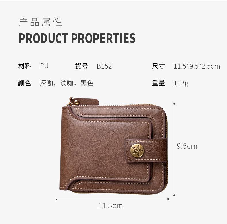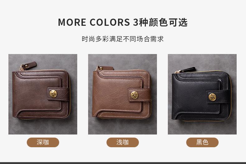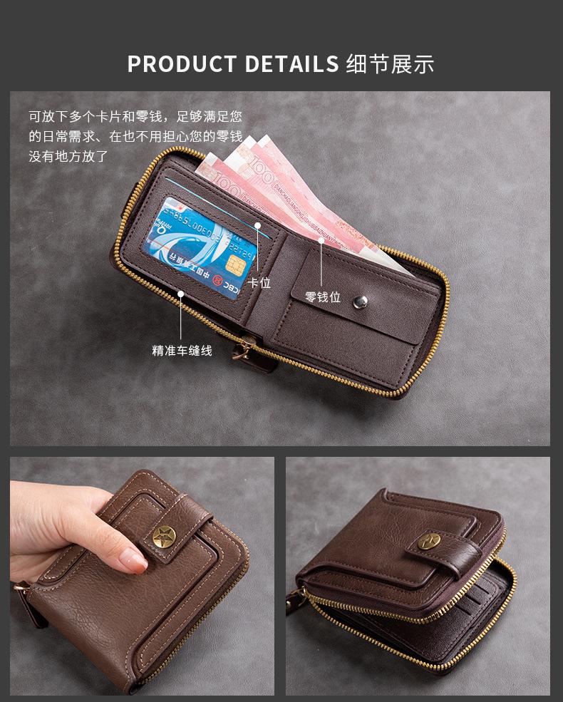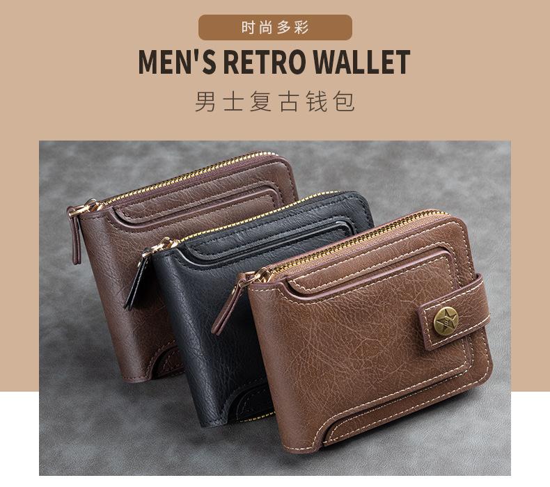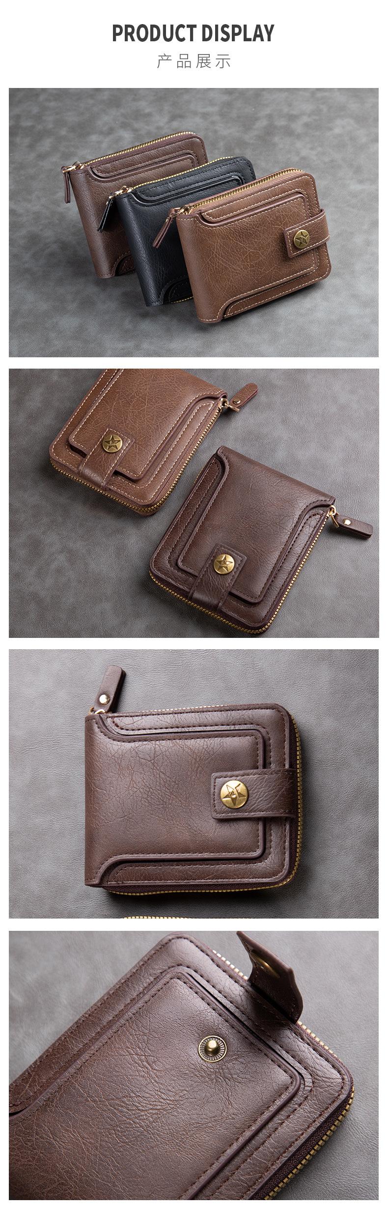 Cartera corta de calidad de comercio exterior para hombre, estilo europeo y americano, multifuncional, retro, horizontal, con cremallera y hebilla para tarjetas.