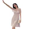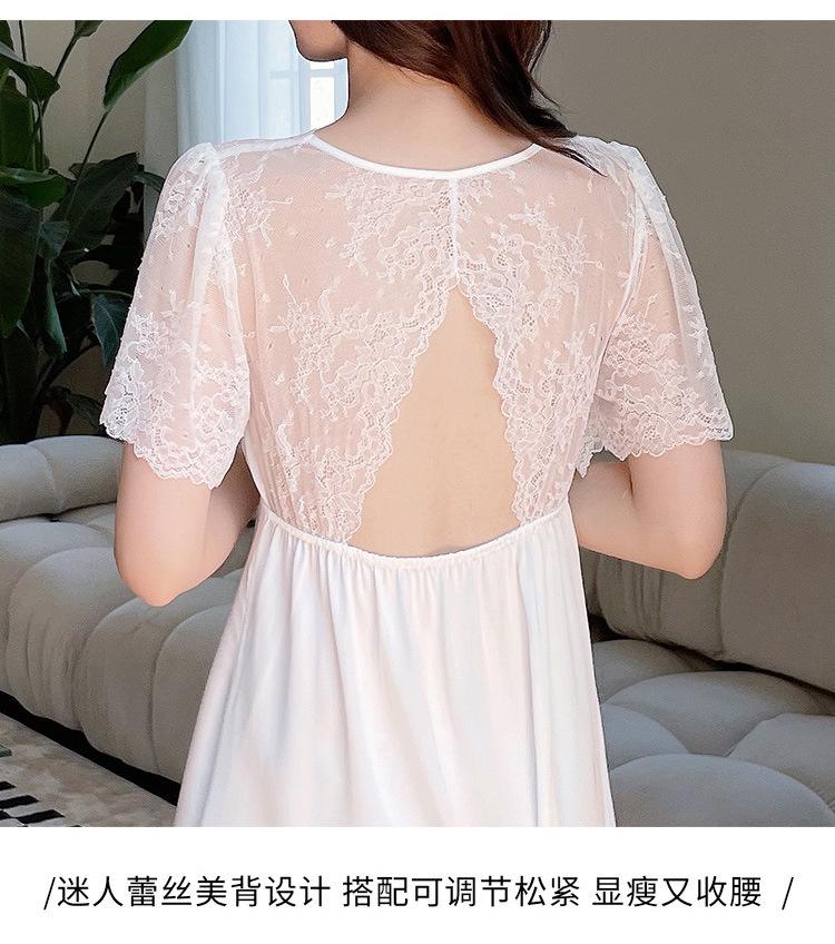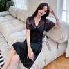 Camisón de verano de manga corta con diseño calado, nuevo estilo transfronterizo, con escote en V profundo y almohadilla para el pecho.