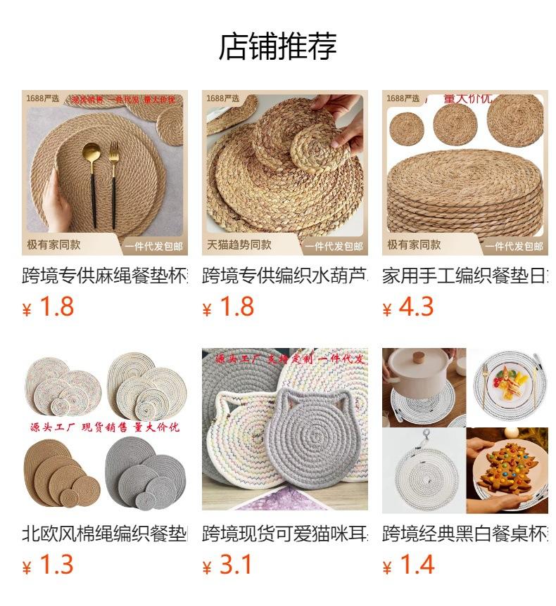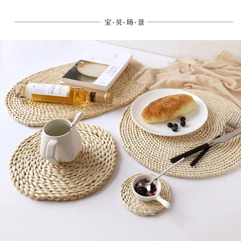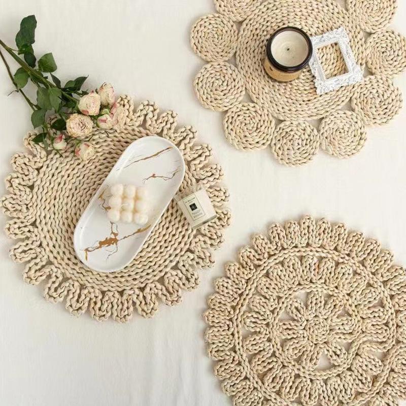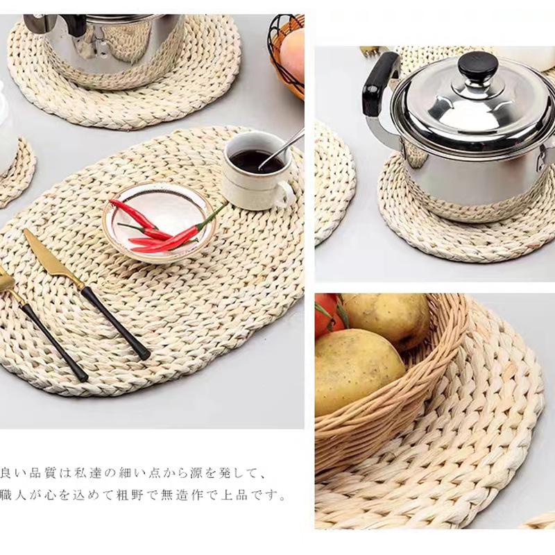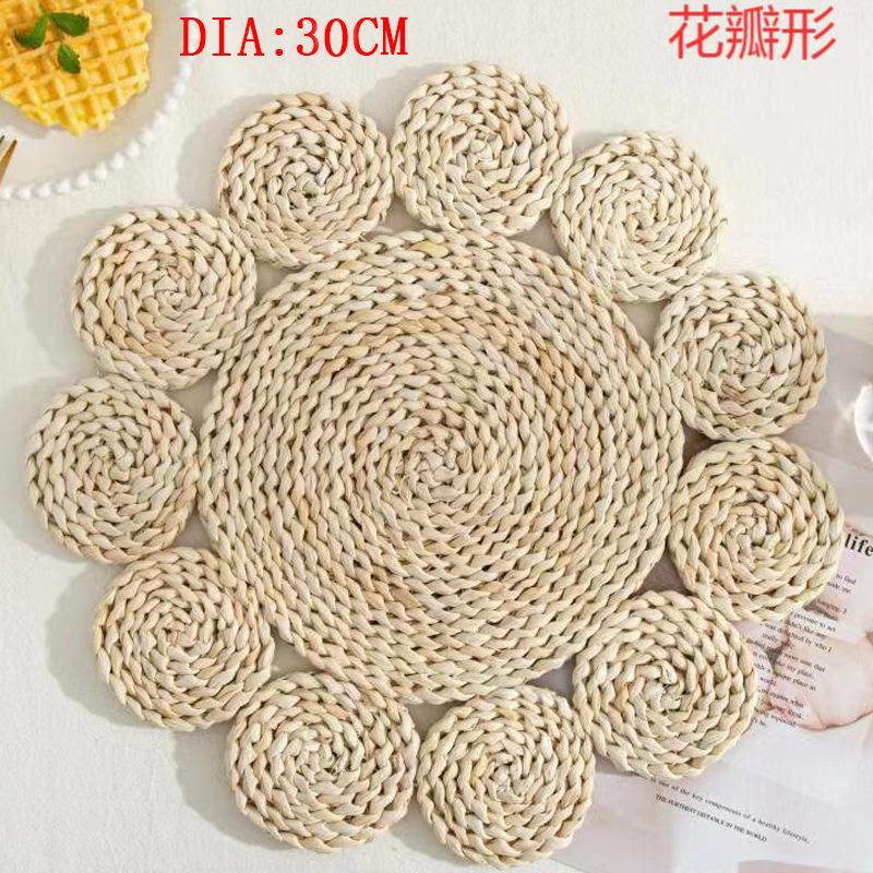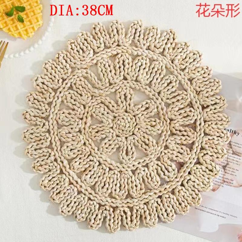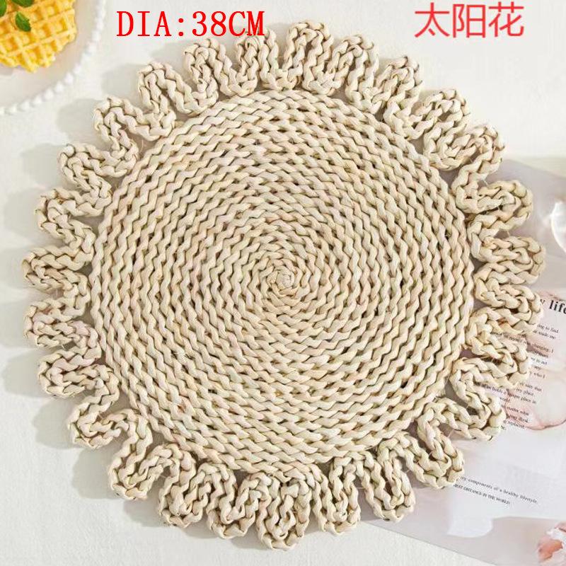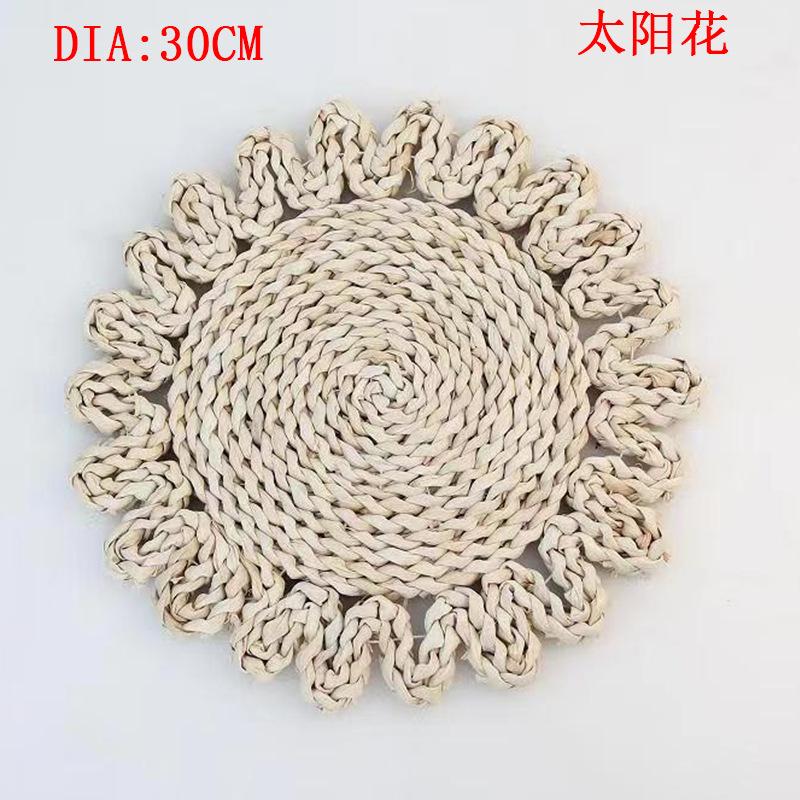 Tapete de té tejido a mano con hojas de maíz y flores de cazuela casera de estilo japonés, tapete de mesa resistente al calor, tapete de plato, mantel individual en lote de existencias