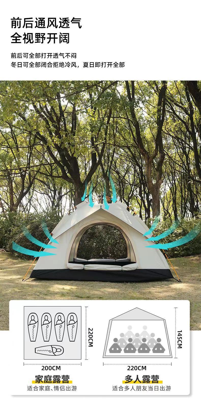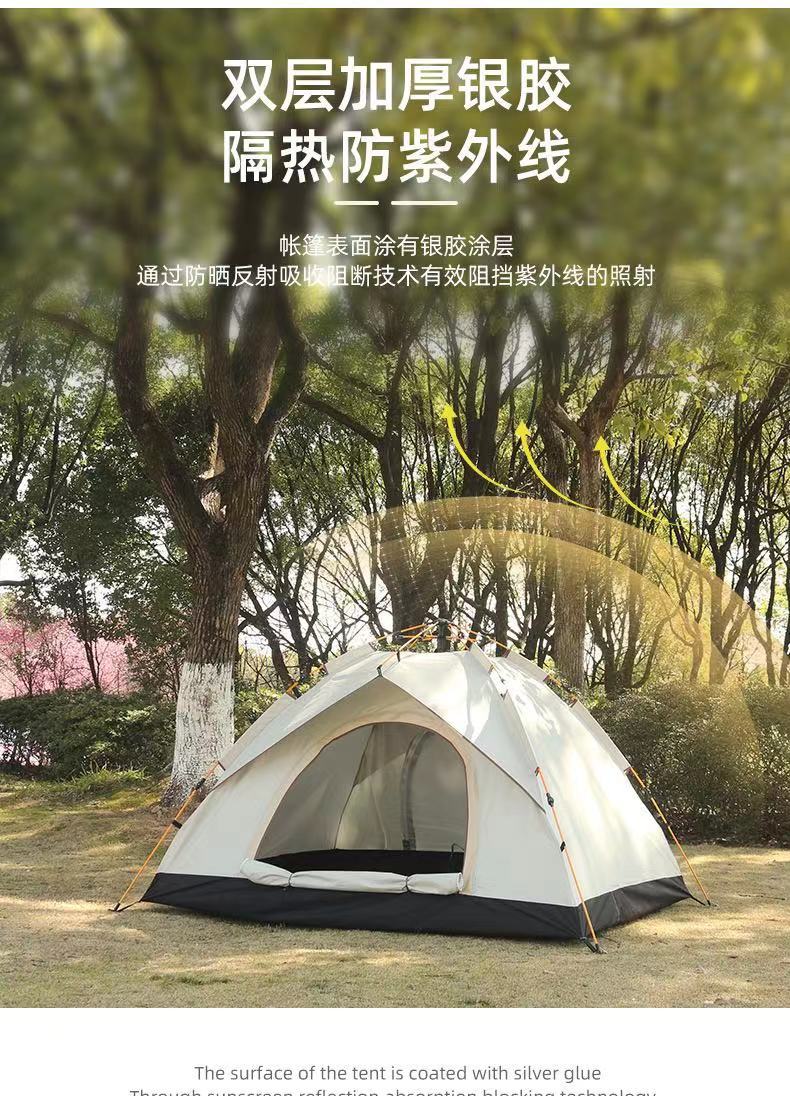 Tienda de campaña para exteriores, totalmente automática, plegable, para acampar en la playa, de apertura rápida, para 3 o 4 personas, recubierta de plata, resistente al sol y a la lluvia, para parques y ocio.