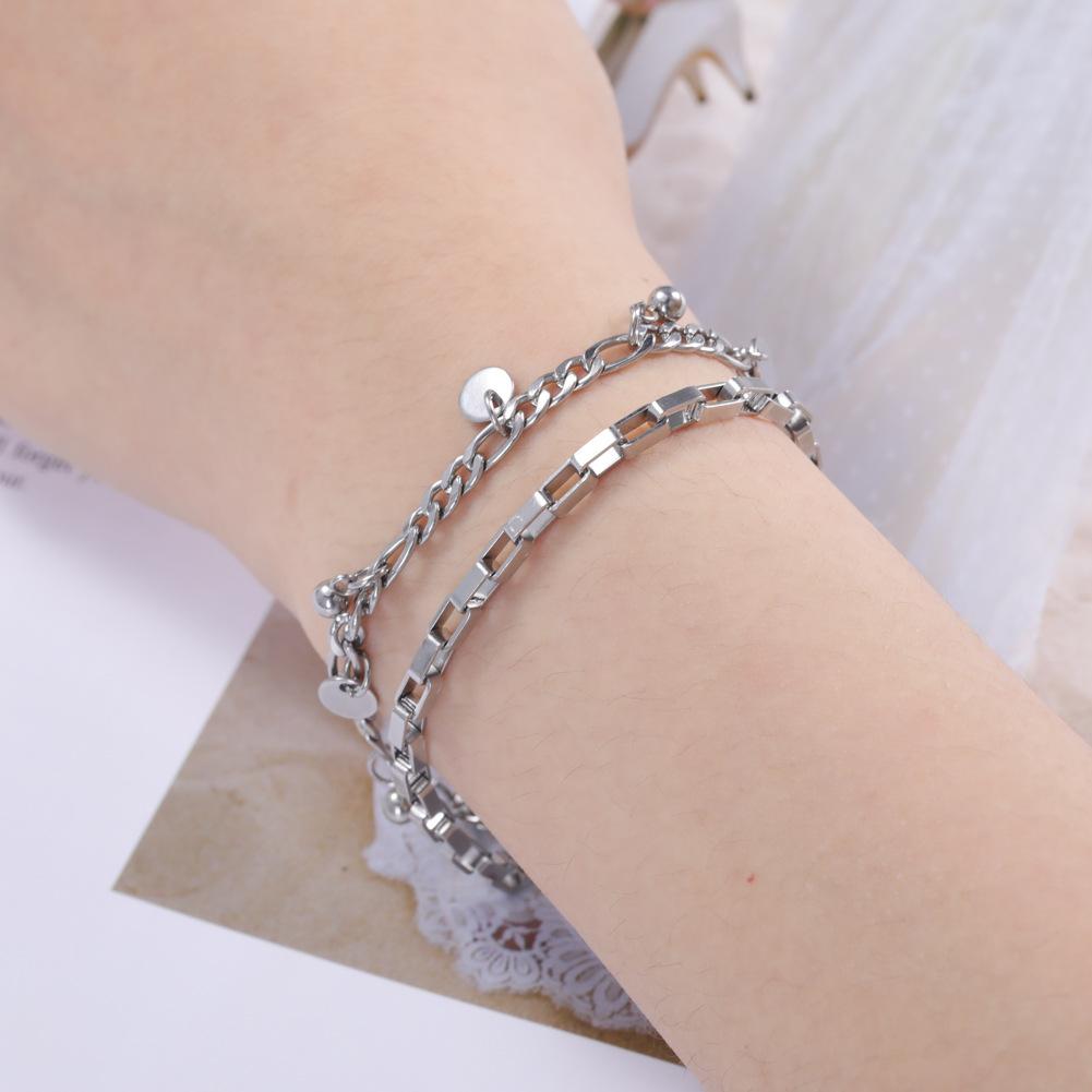 Directo de fábrica estilo europeo y americano acero titanio simple personalidad pulsera doble colgante disco liso pulsera de acero inoxidable 304