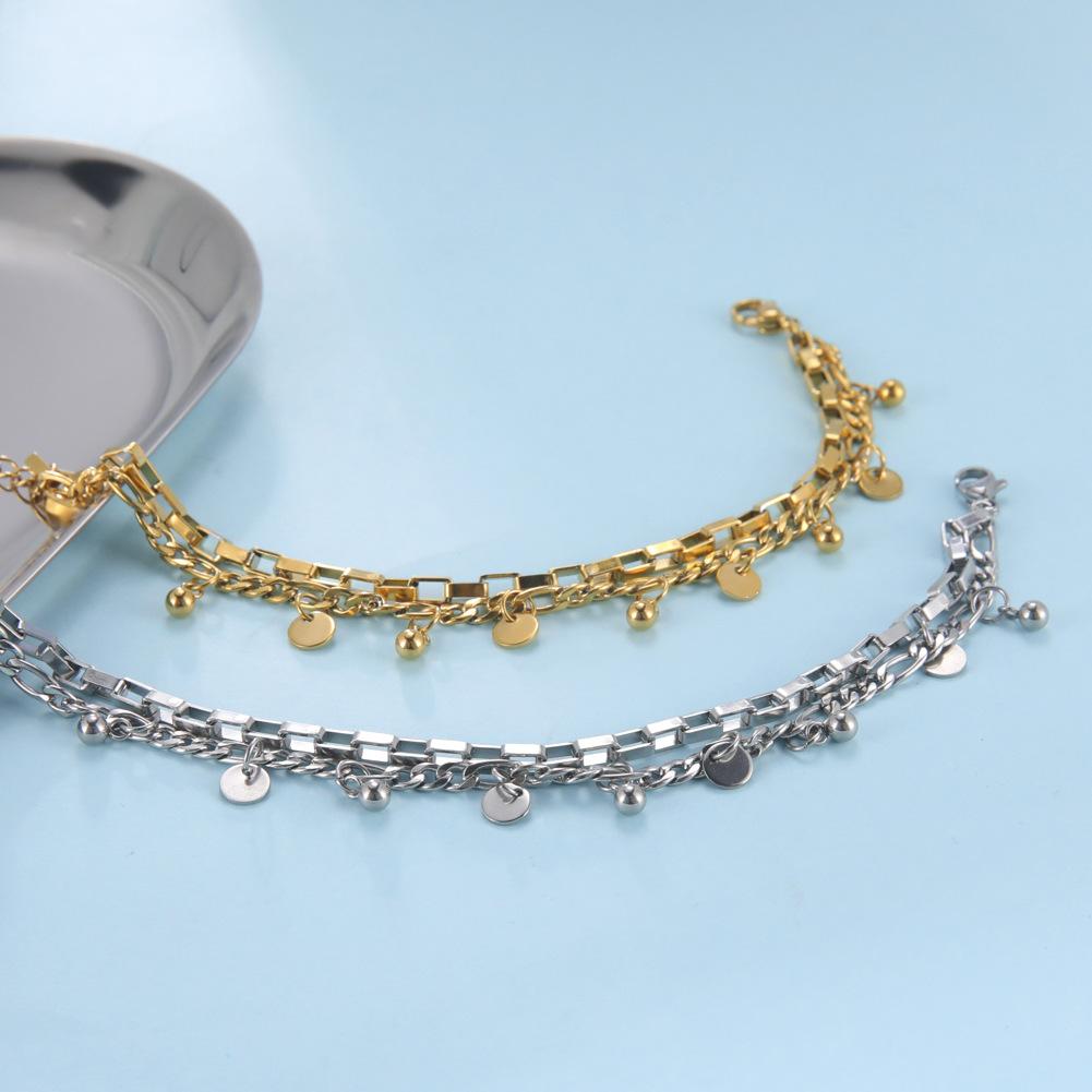 Compra Directo de fábrica estilo europeo y americano acero titanio simple personalidad pulsera doble colgante disco liso pulsera de acero inoxidable 304 al por mayor en Joom.pro