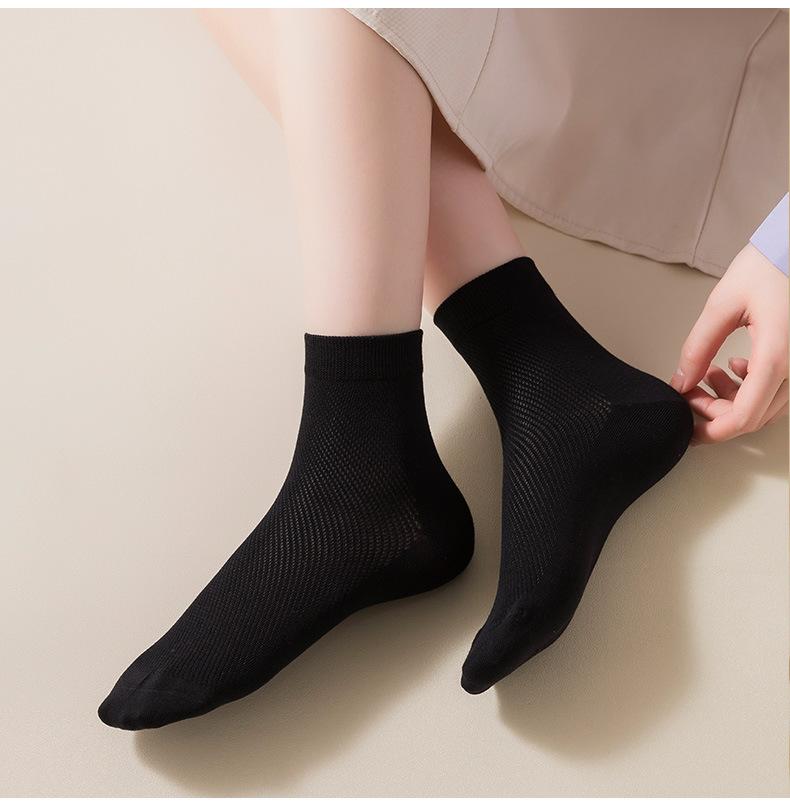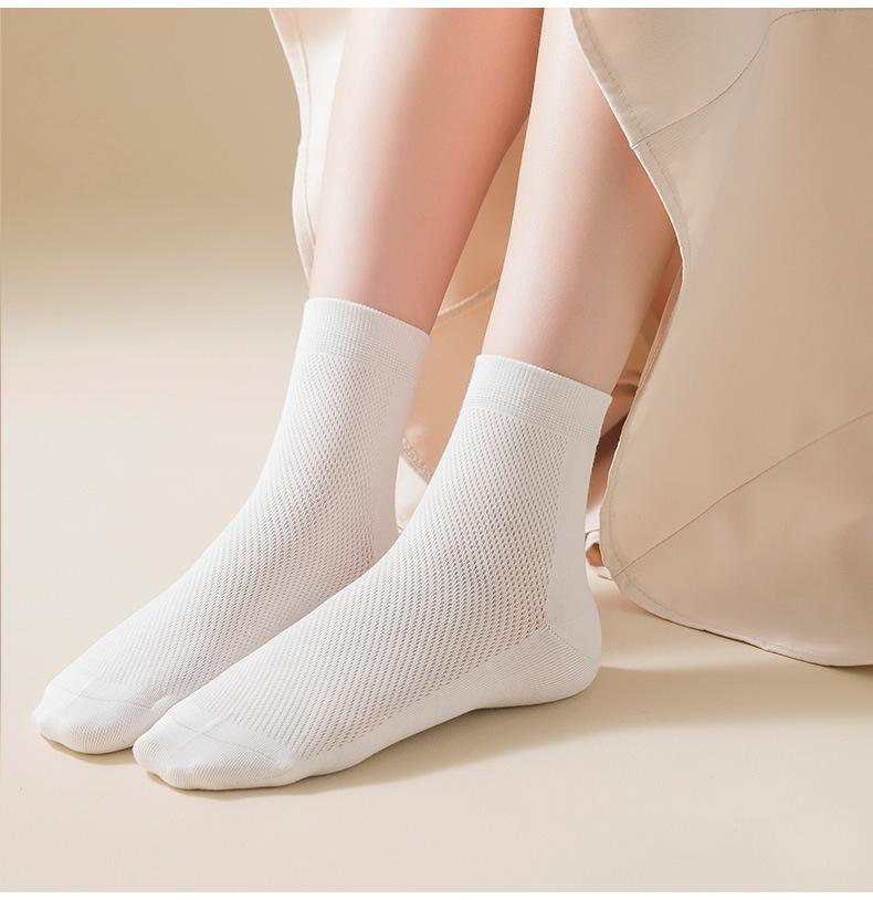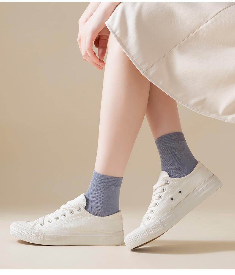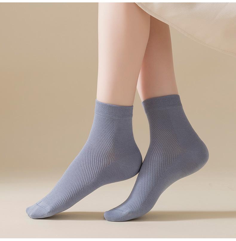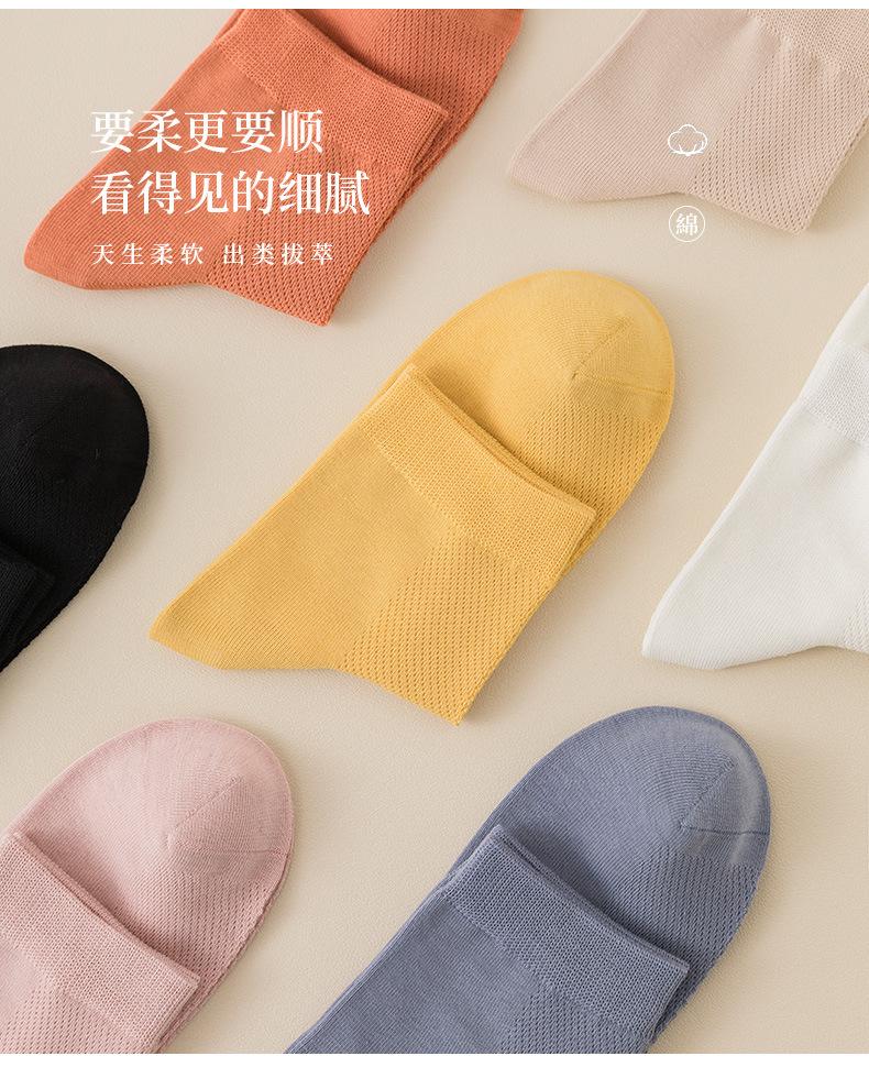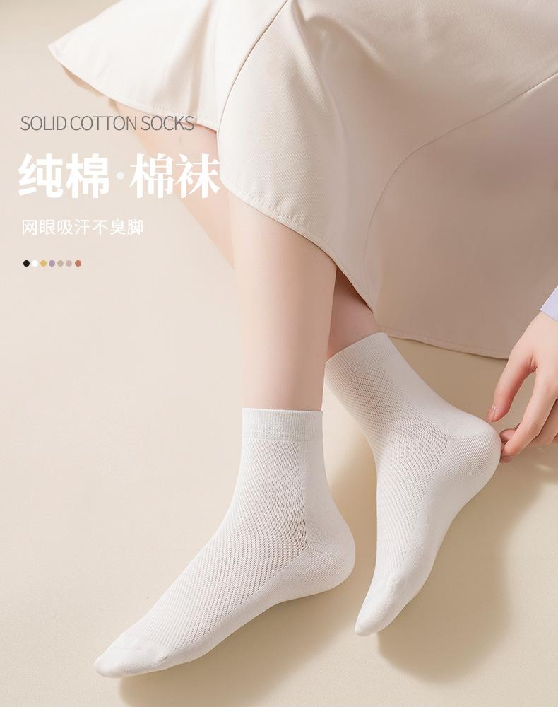 Calcetines de mujer de primavera y otoño de algodón de malla de color sólido transpirables y absorbentes del sudor desodorante para mujer de media pantorrilla calcetines casuales de algodón para mujer al por mayor