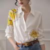 Camisa de seda nueva primavera y verano 2023 para mujer, de manga larga, de satén de alta gama, con diseño floral, ideal para negocios.