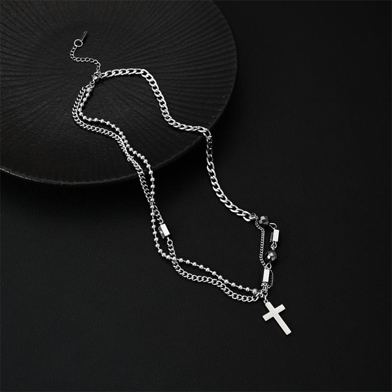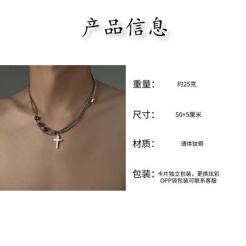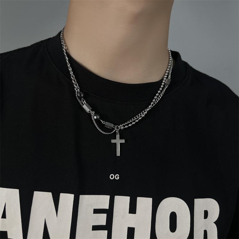 Collar de acero de titanio con cruz de doble capa para hombre, moderno y versátil, estilo hip hop, cadena de suéter de alta calidad, accesorios personalizados